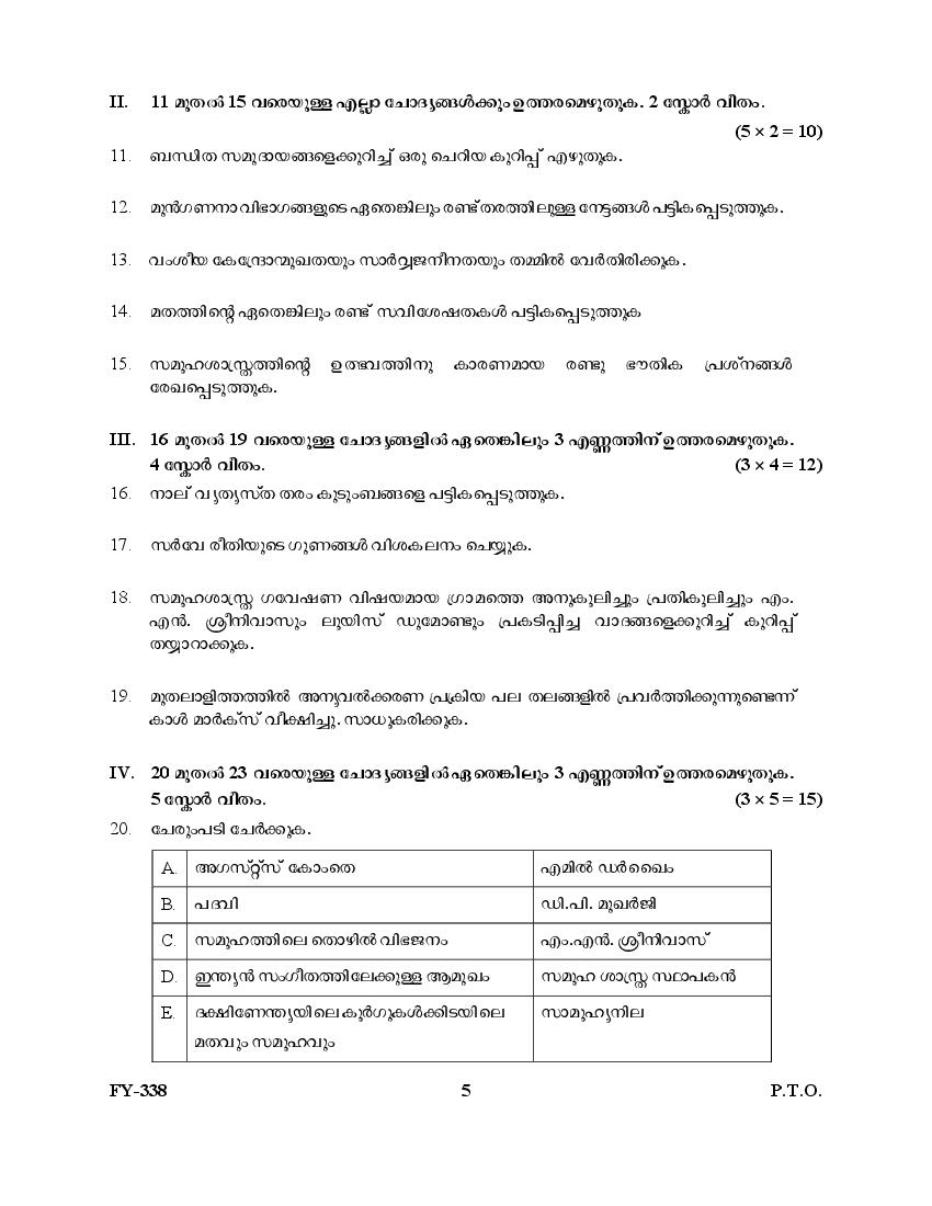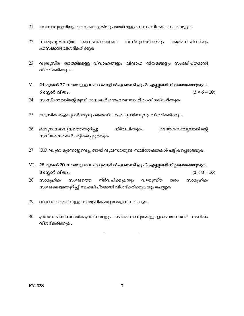 Kerala Plus One Question Paper 2025 Sociology View Download