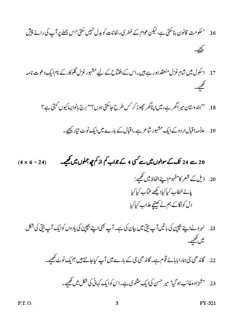 The Kerala Previous Year Question Paper for Class 11 (Plus One) Urdu Optional is as follows.