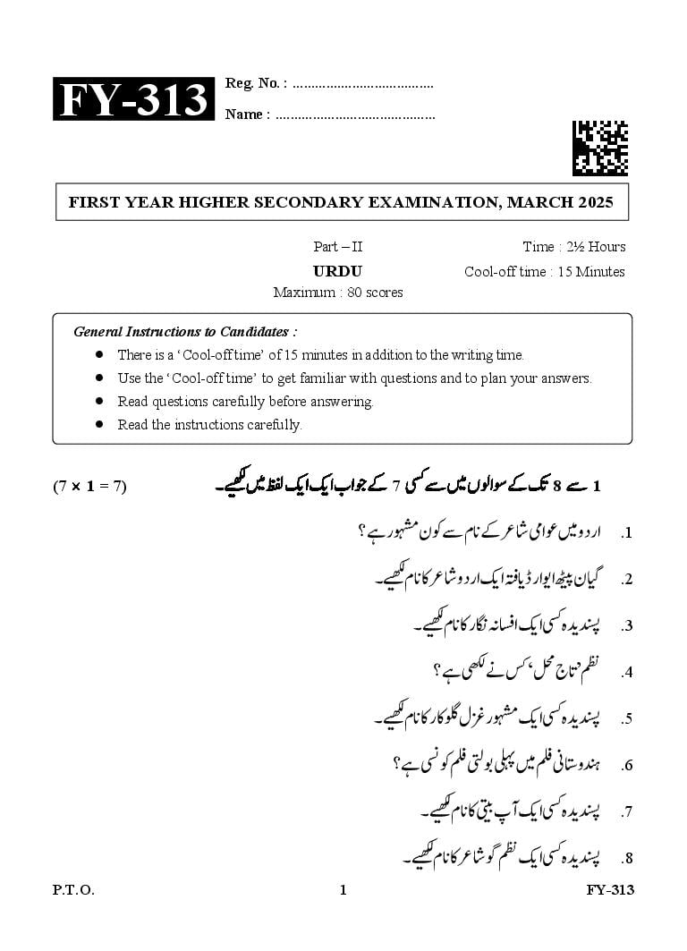 | Education Material Here | Kerala Board Exam Question Paper for Class 11 Urdu 2025 |