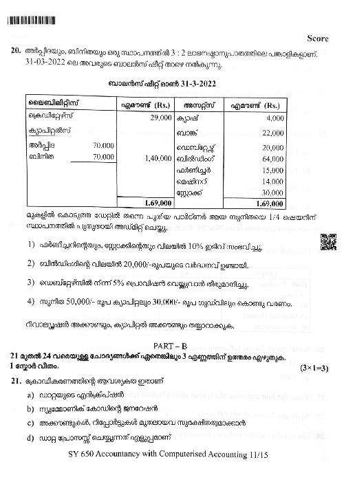 You can download the Kerala Plus Two Accountancy Model Question Paper 2026 in PDF format to kickstart your practice. These question papers are curated by the Kerala Board of Public Examination (KBPE) and are a great way to evaluate your preparation level before the actual exams. The latest available complete paper is as follows.