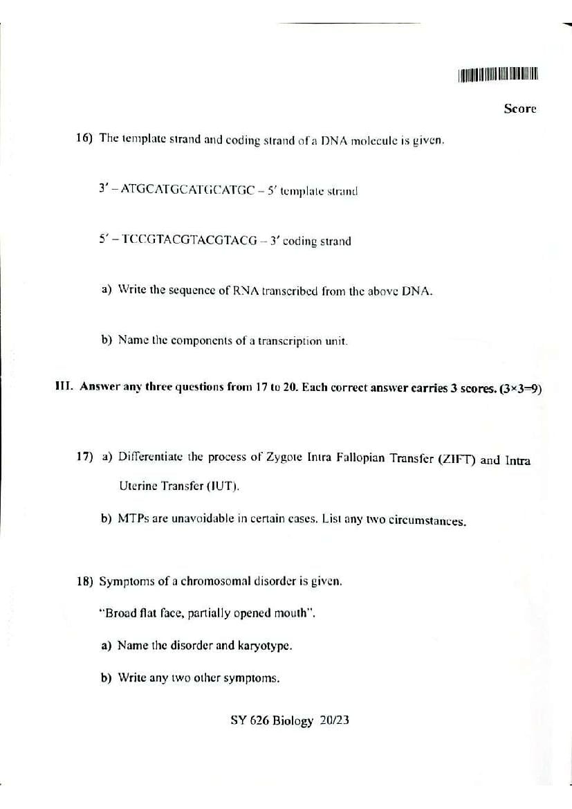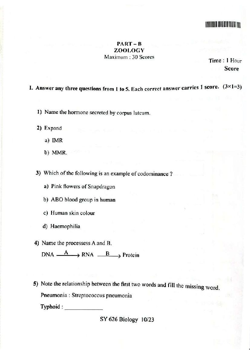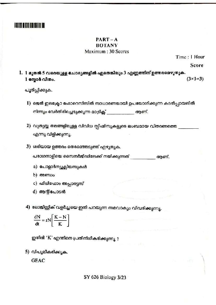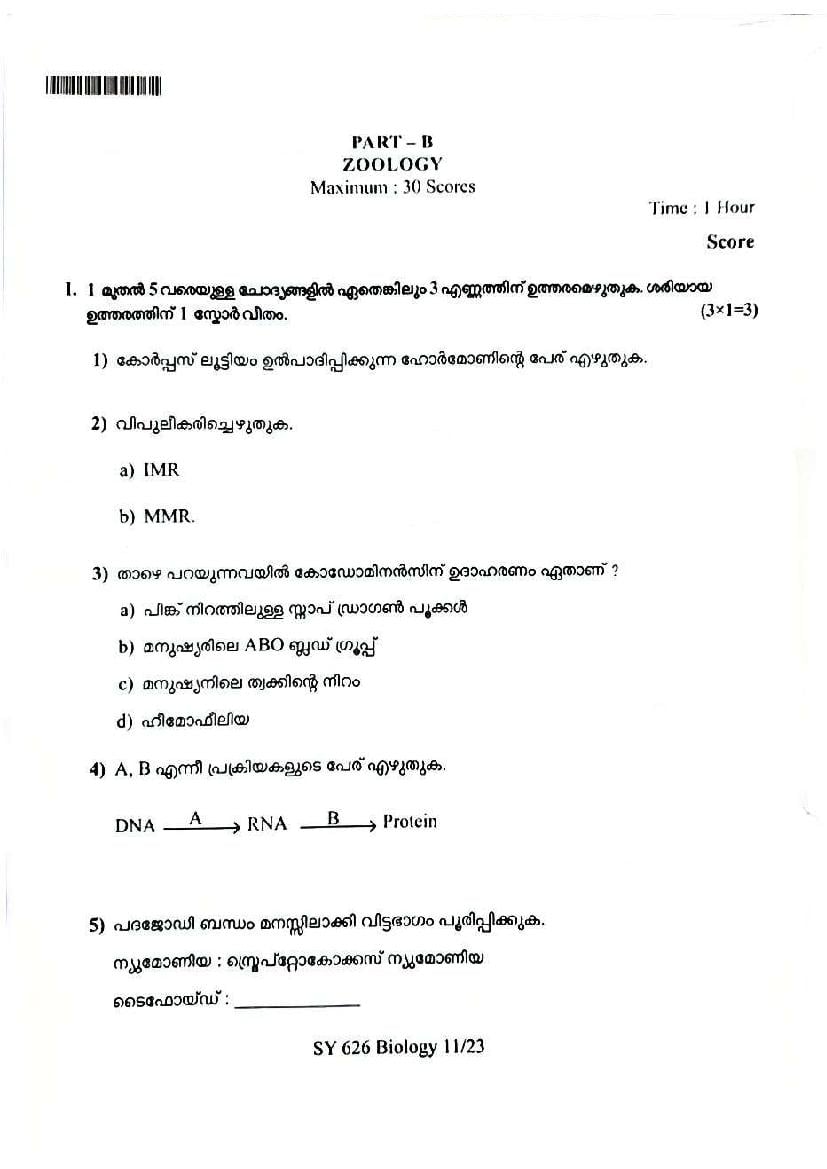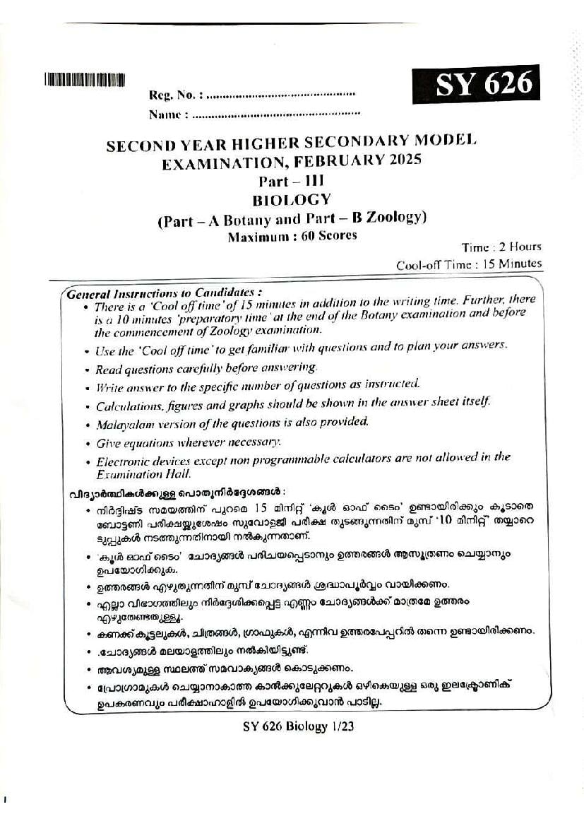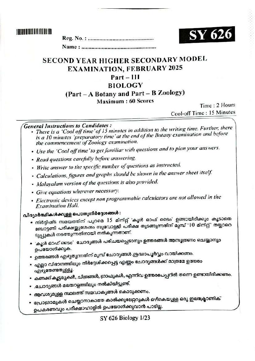 You can download the Kerala Plus Two Biology Model Question Paper 2026 in PDF format to kickstart your practice. These question papers are curated by the Kerala Board of Public Examination (KBPE) and are a great way to evaluate your preparation level before the actual exams. The latest available complete paper is as follows.
