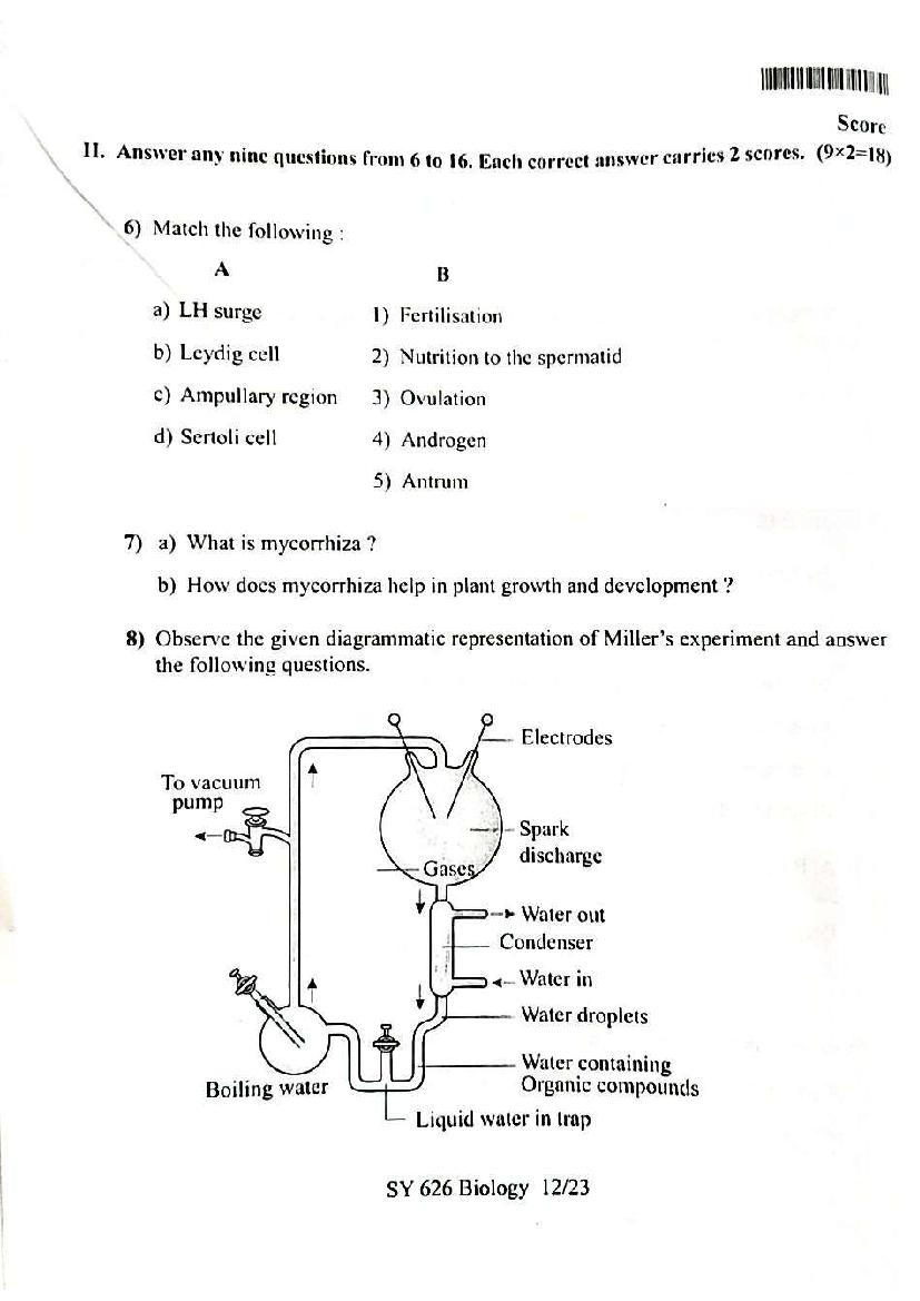 The Kerala Board Plus Two Model Exam 2026 Question Paper of Biology is as follows. This can also be used as a Kerala Sample Question Paper for Plus Two class 12, for the Biology subject test.