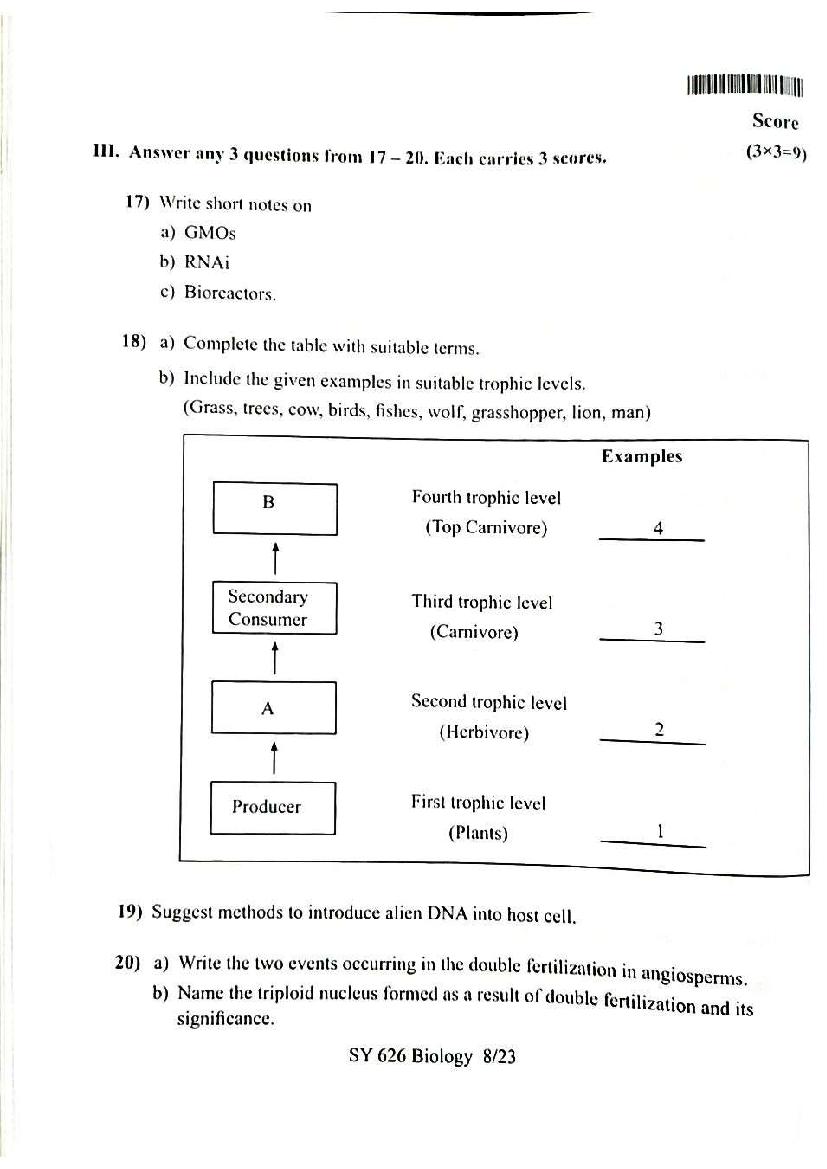 | Study Material Here | Kerala Model Exam Question Paper of Plus Two Biology |