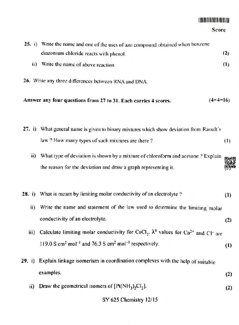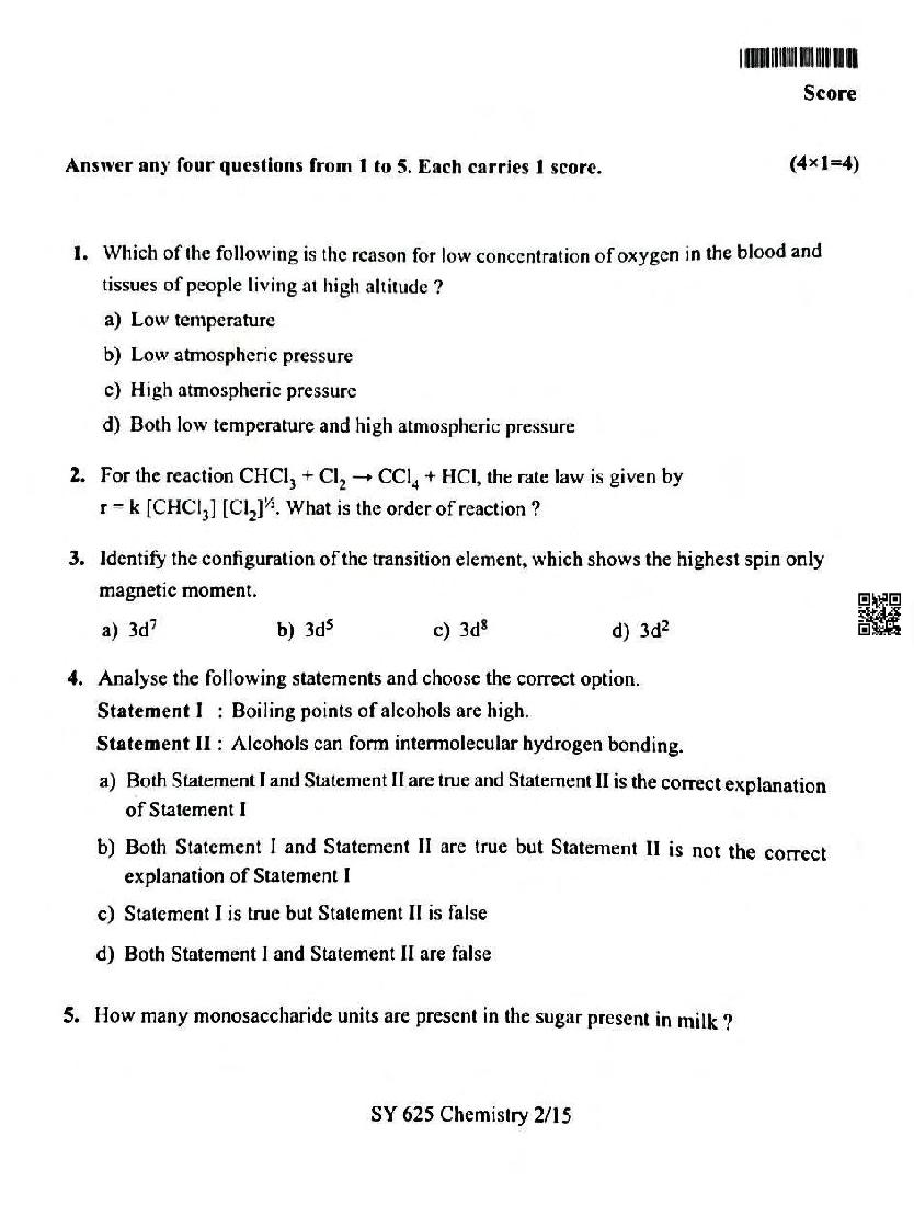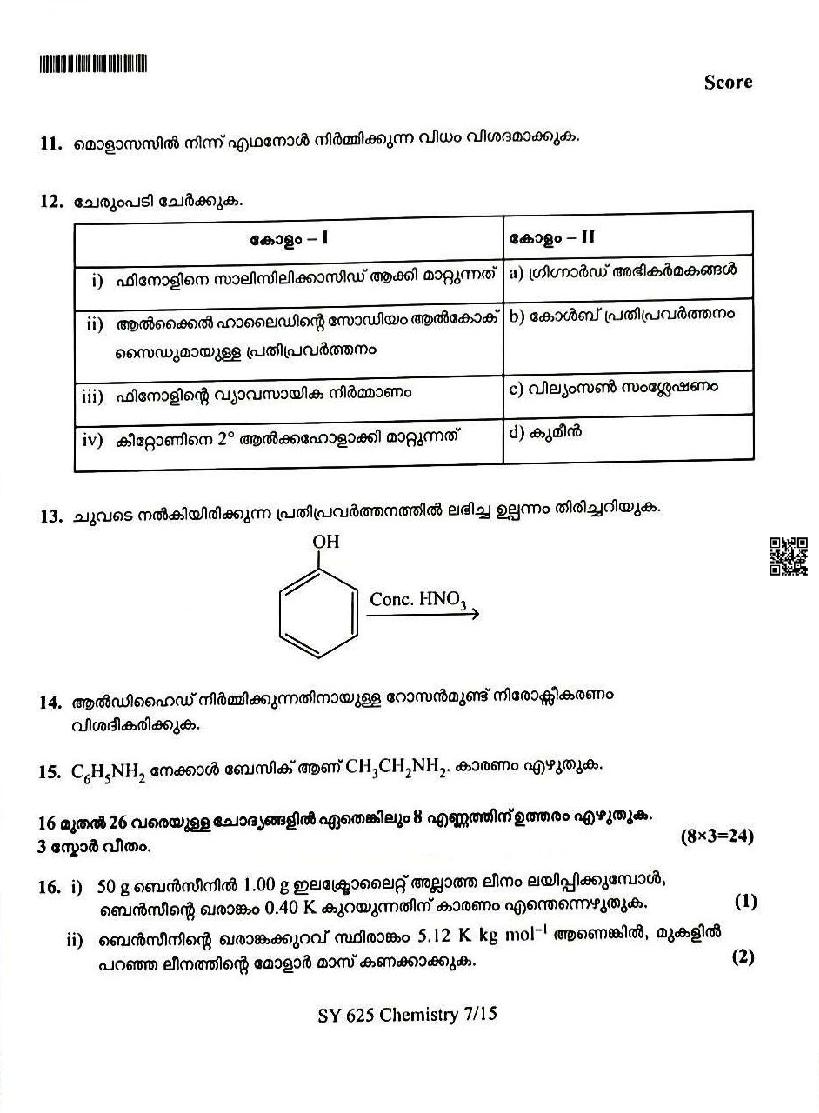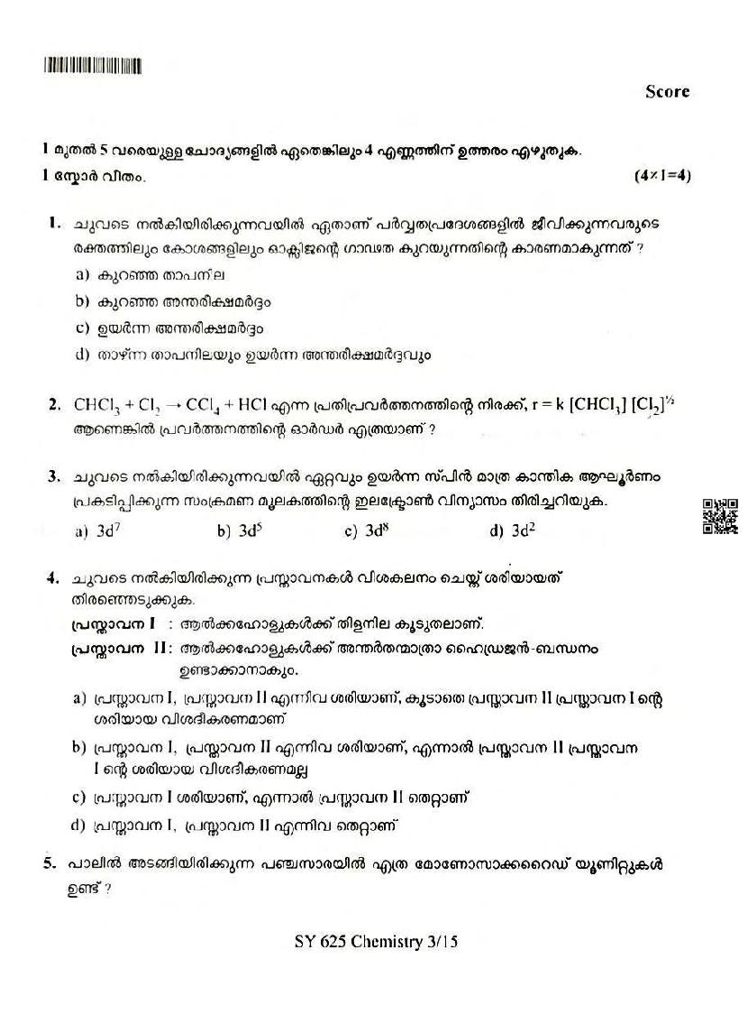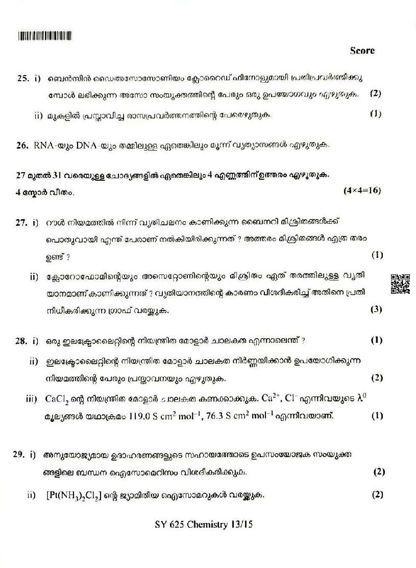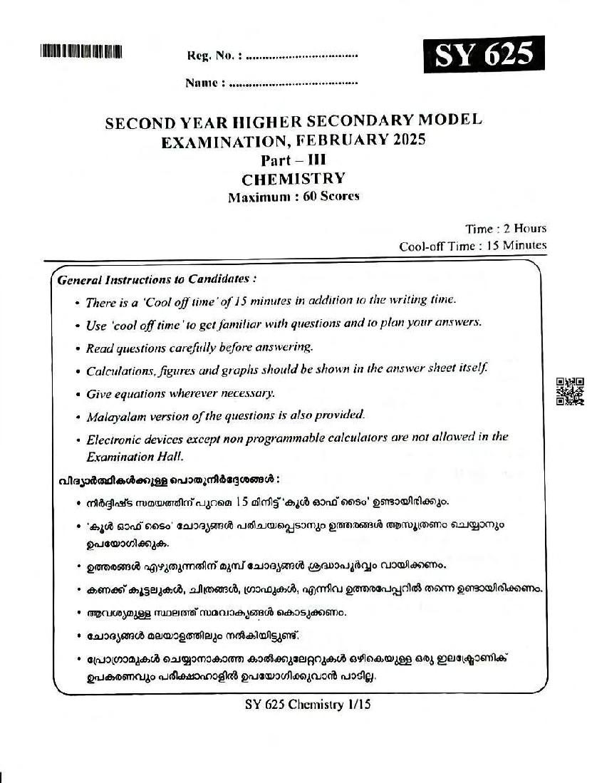 You can download the Kerala Plus Two Chemistry Model Question Paper 2026 in PDF format to kickstart your practice. These question papers are curated by the Kerala Board of Public Examination (KBPE) and are a great way to evaluate your preparation level before the actual exams. The latest available complete paper is as follows.