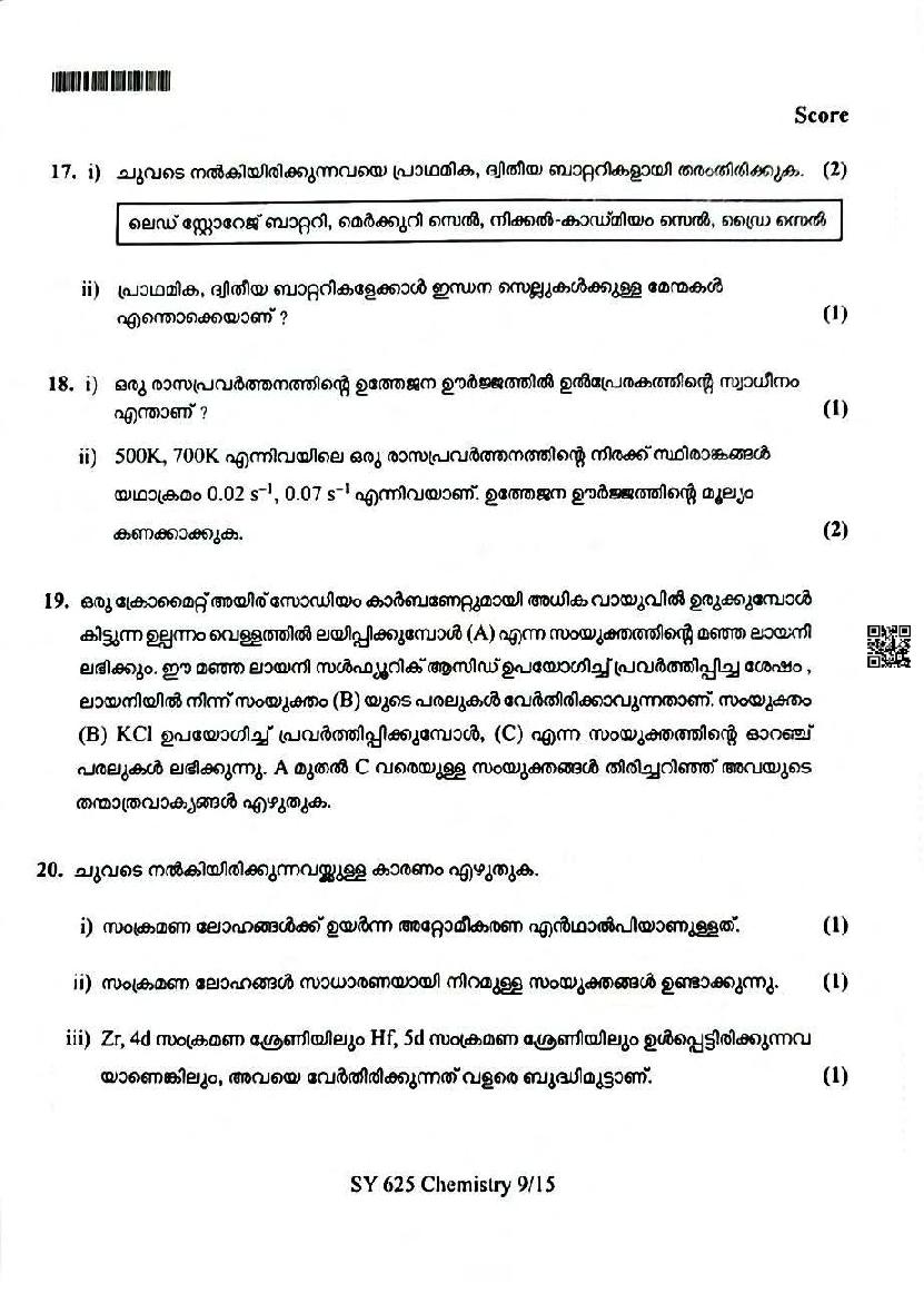 Besides the Chemistry paper, questions for other subjects are also available for download. The preliminary kerala model exam question papers for all subjects are as follows.