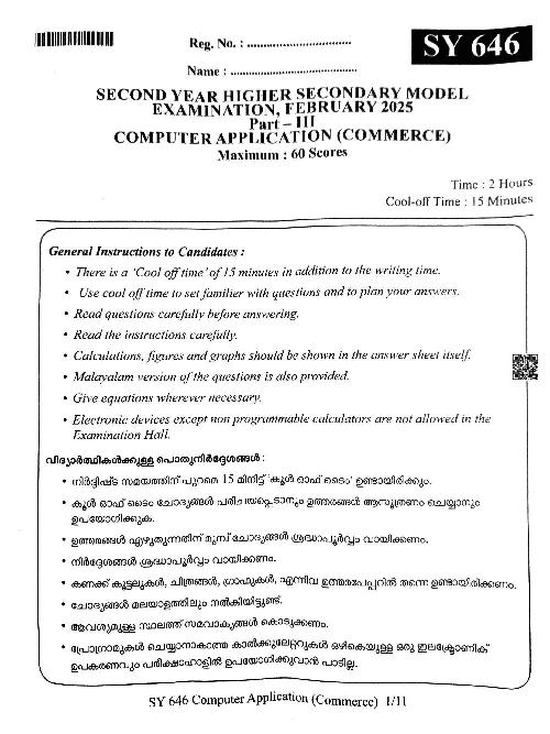 You can download the Kerala Plus Two Commerce Model Question Paper 2026 in PDF format to kickstart your practice. These question papers are curated by the Kerala Board of Public Examination (KBPE) and are a great way to evaluate your preparation level before the actual exams. The latest available complete paper is as follows.