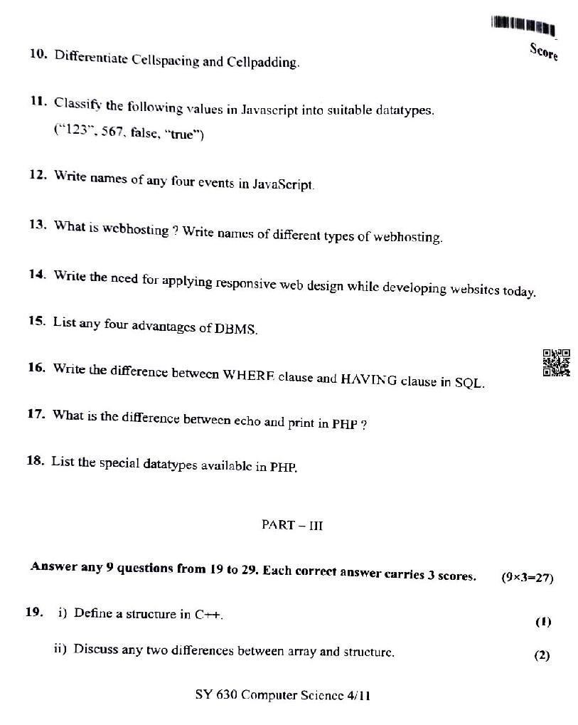 You can download the Kerala Plus Two Computer Science Model Question Paper 2026 in PDF format to kickstart your practice. These question papers are curated by the Kerala Board of Public Examination (KBPE) and are a great way to evaluate your preparation level before the actual exams. The latest available complete paper is as follows.