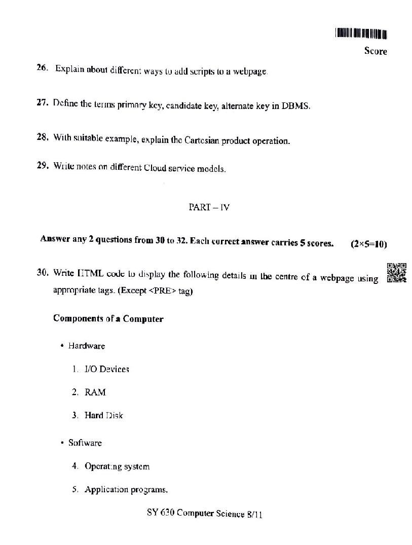 Besides the Computer Science paper, questions for other subjects are also available for download. The preliminary kerala model exam question papers for all subjects are as follows.