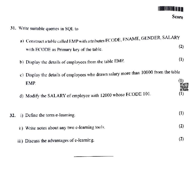 | Study Material Here | Kerala Model Exam Question Paper of Plus Two Computer Science |
