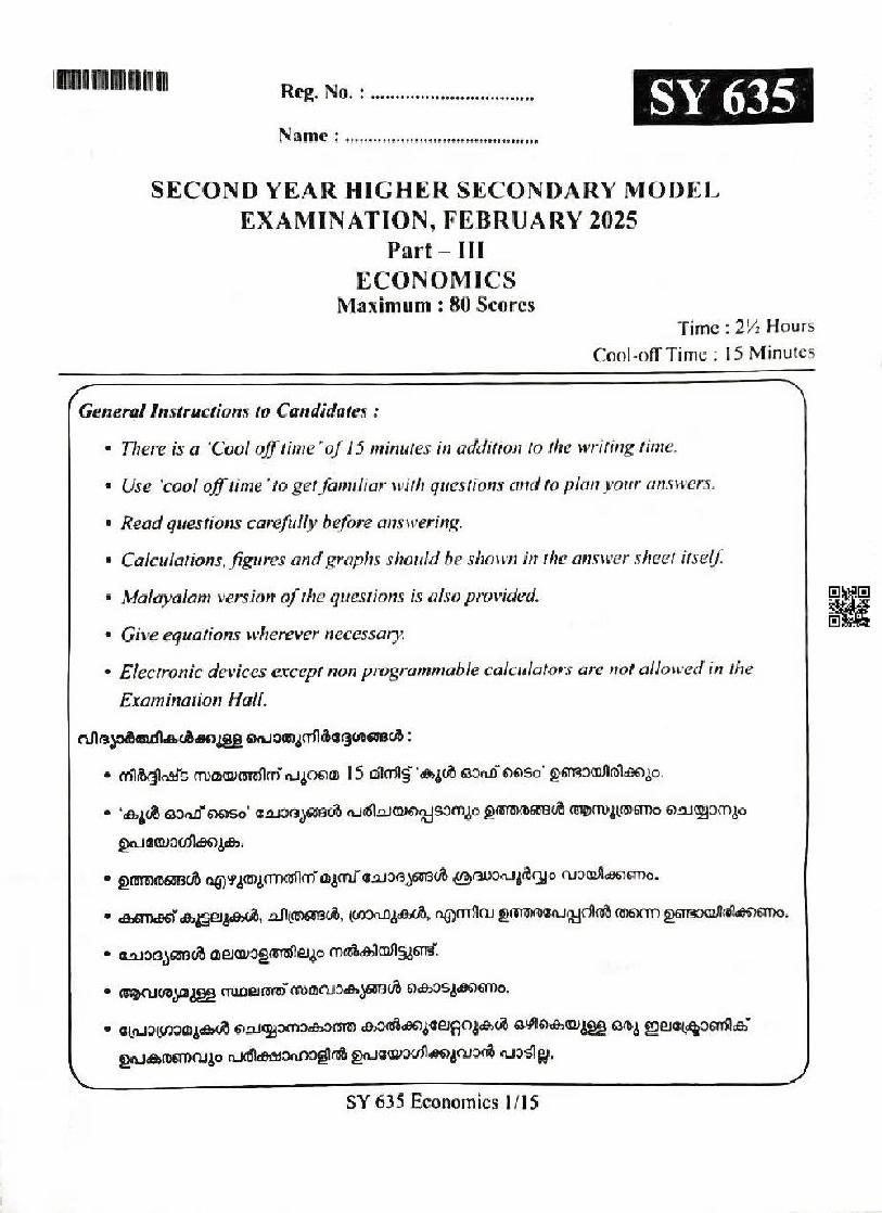 Kerala Plus Two Model Exam Question Paper 2025 Economics View Download