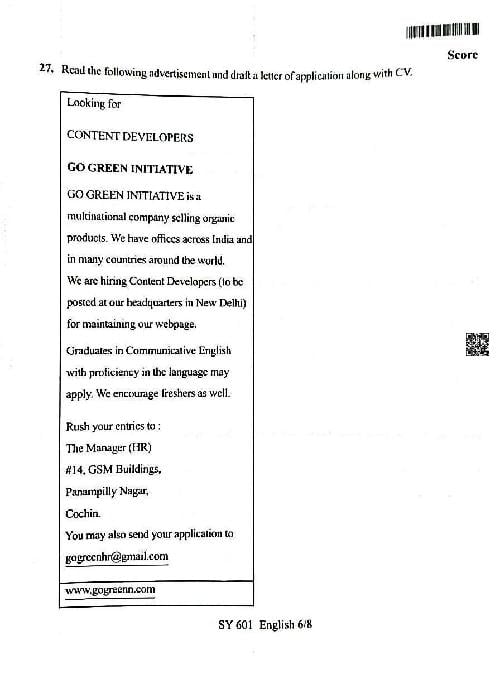 The Kerala Board Plus Two Model Exam 2026 Question Paper of English is as follows. This can also be used as a Kerala Sample Question Paper for Plus Two class 12, for the English subject test.