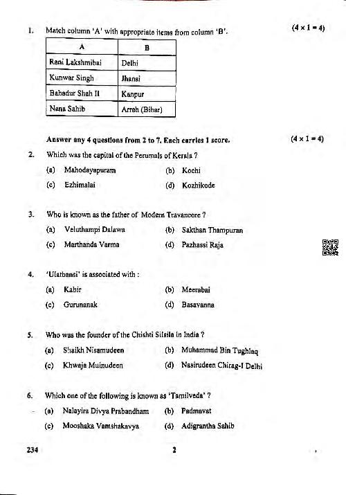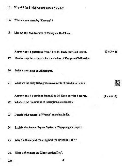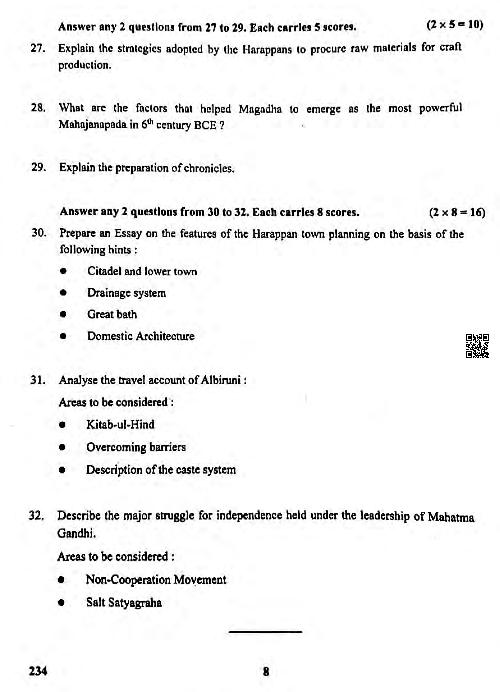 The Kerala Board Plus Two Model Exam 2025 Question Paper of History is as follows. This can also be used as a Kerala Sample Question Paper for Plus Two class 12, for the History subject test.