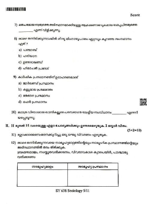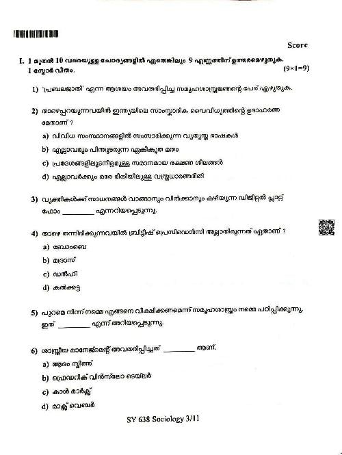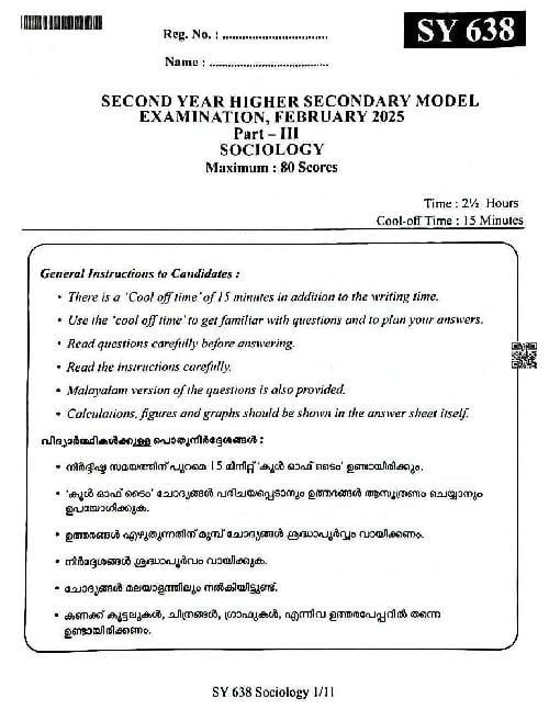 You can download the Kerala Plus Two Sociology Model Question Paper 2026 in PDF format to kickstart your practice. These question papers are curated by the Kerala Board of Public Examination (KBPE) and are a great way to evaluate your preparation level before the actual exams. The latest available complete paper is as follows.