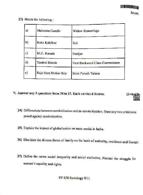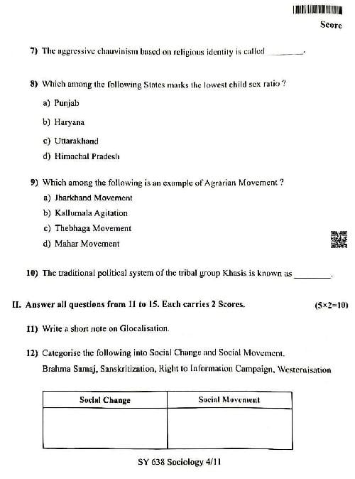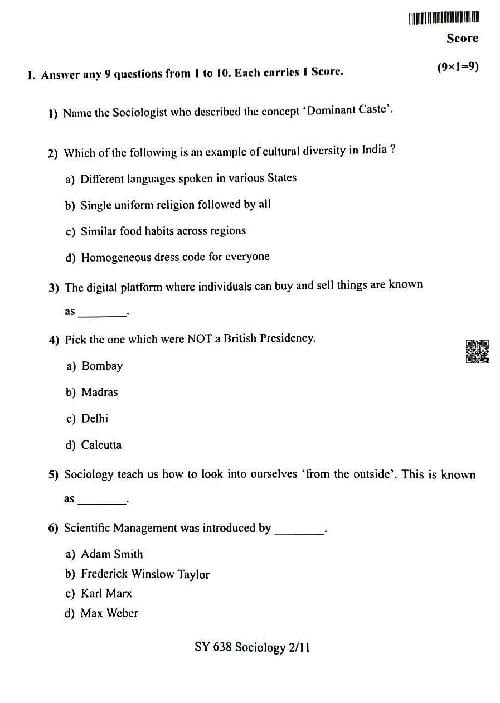 The Kerala Board Plus Two Model Exam 2026 Question Paper of Sociology is as follows. This can also be used as a Kerala Sample Question Paper for Plus Two class 12, for the Sociology subject test.