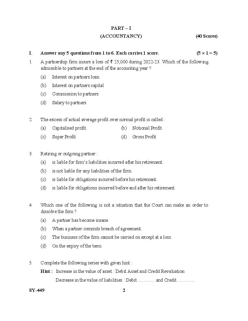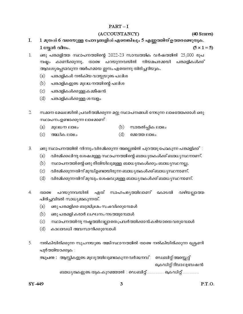 | Education Material Here | Kerala Board Exam Question Paper for Class 12 Accountancy with AFS 2025 |