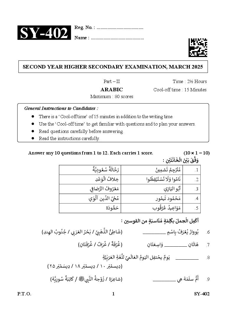 | Education Material Here | Kerala Board Exam Question Paper for Class 12 Arabic 2025 |