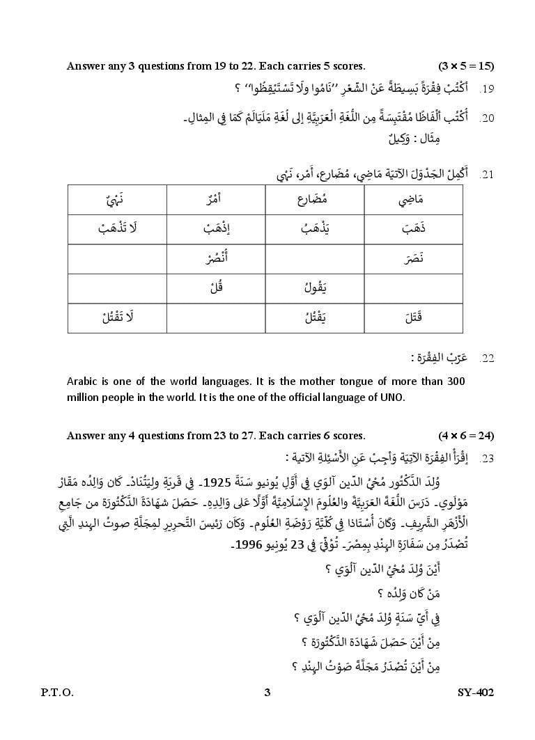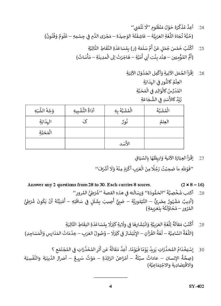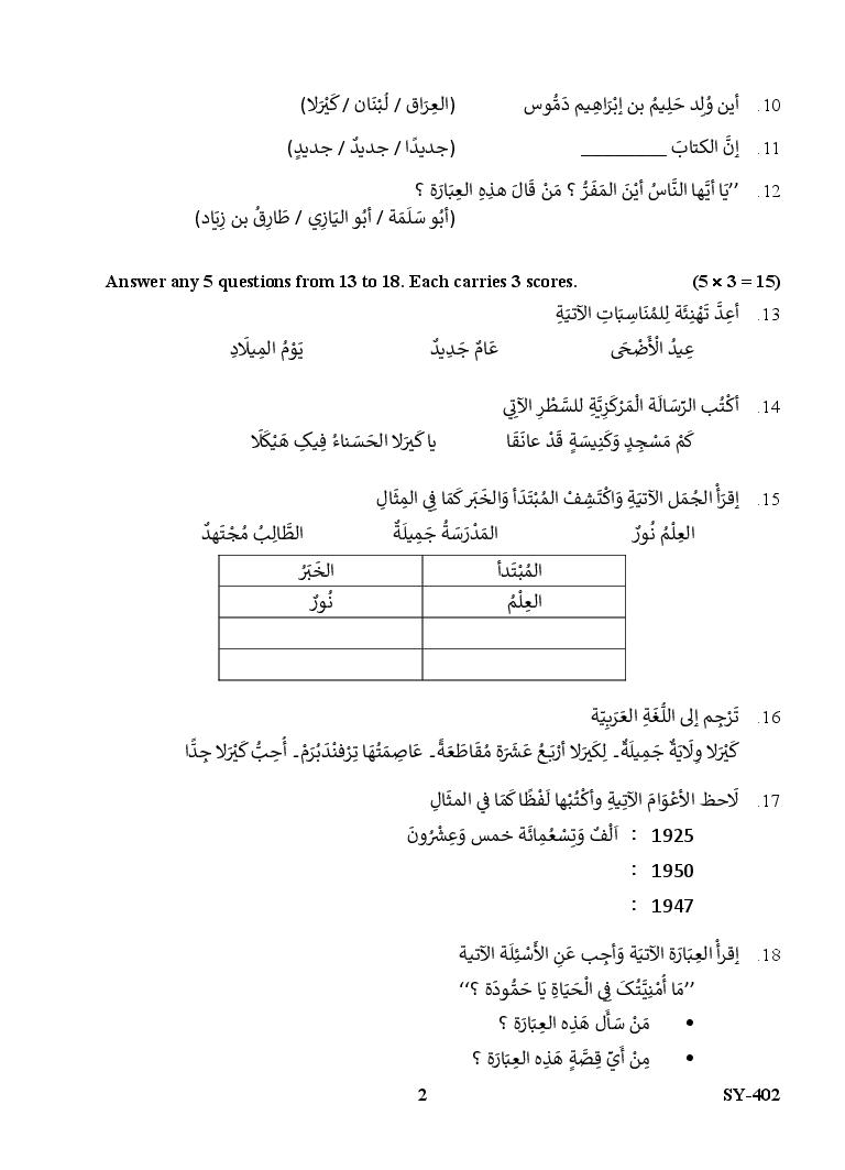 The Kerala Previous Year Question Paper for Class 12 (Plus Two) Arabic is as follows.