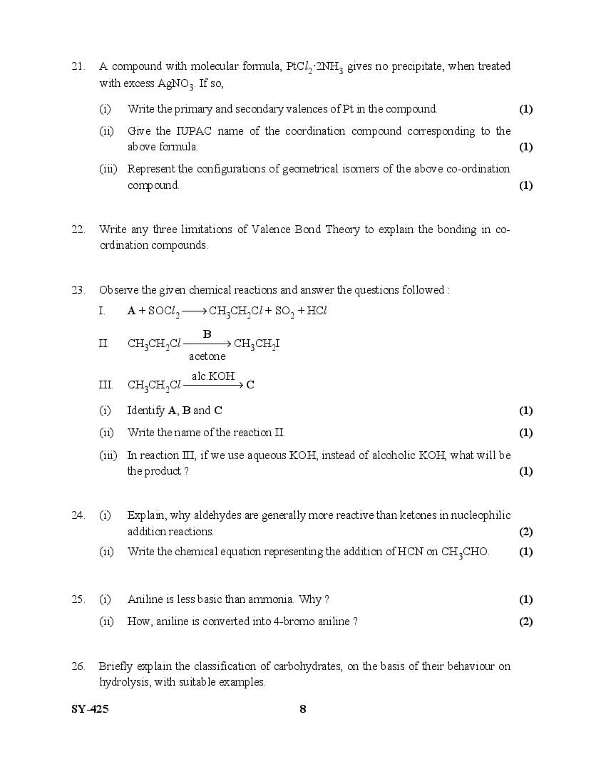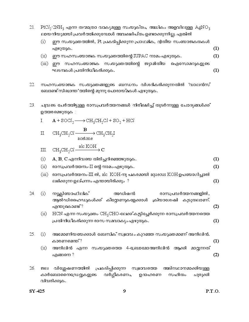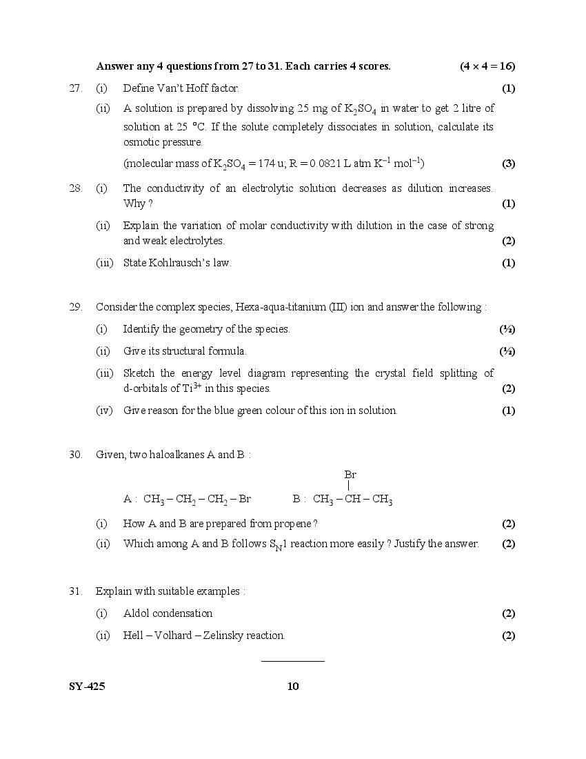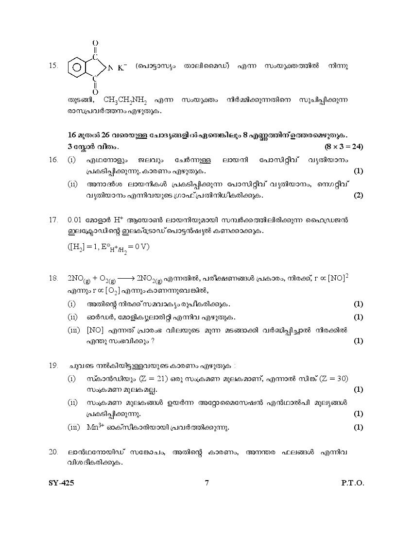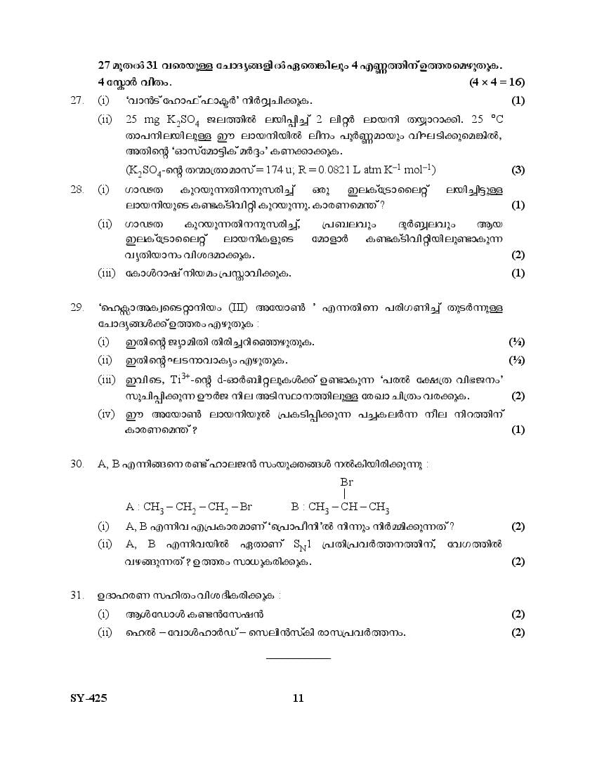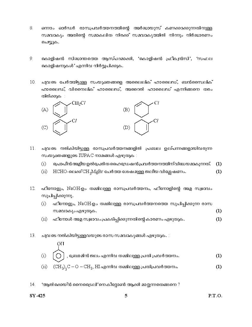 | Education Material Here | Kerala Board Exam Question Paper for Class 12 Chemistry 2025 |