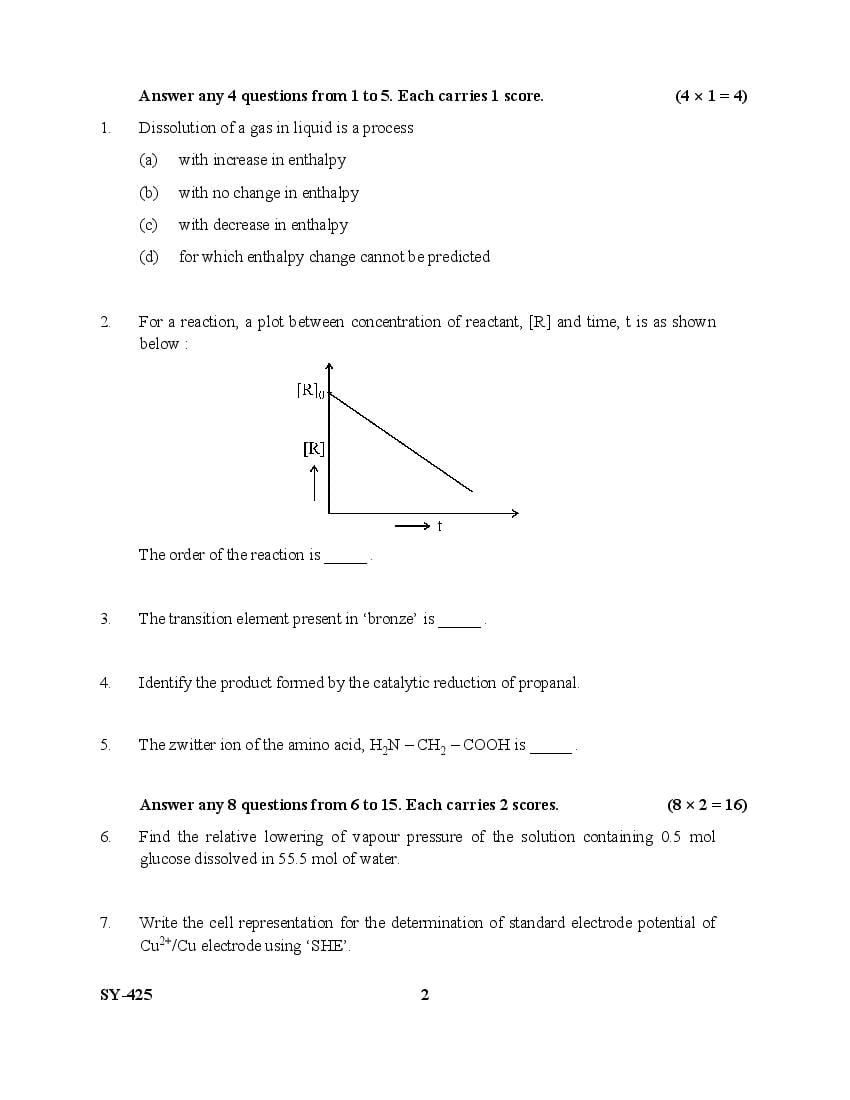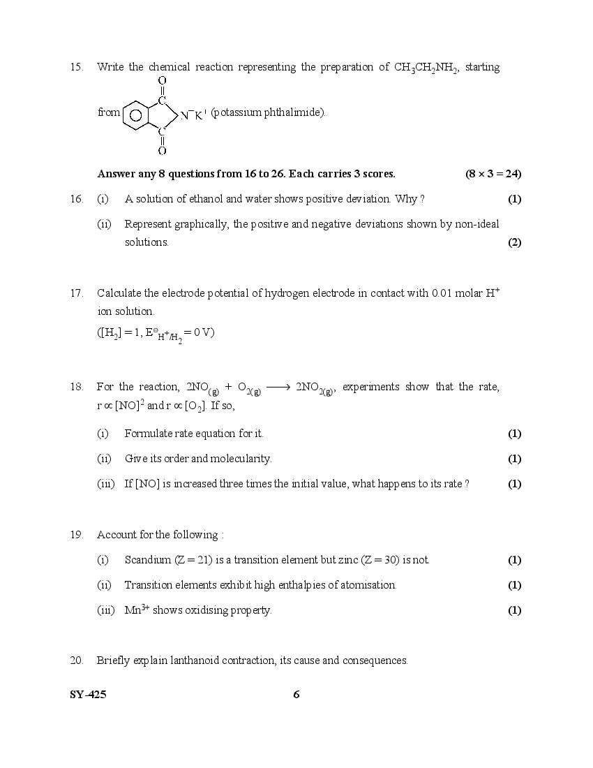 Kerala Plus Two Question Paper 2025 Chemistry View Download