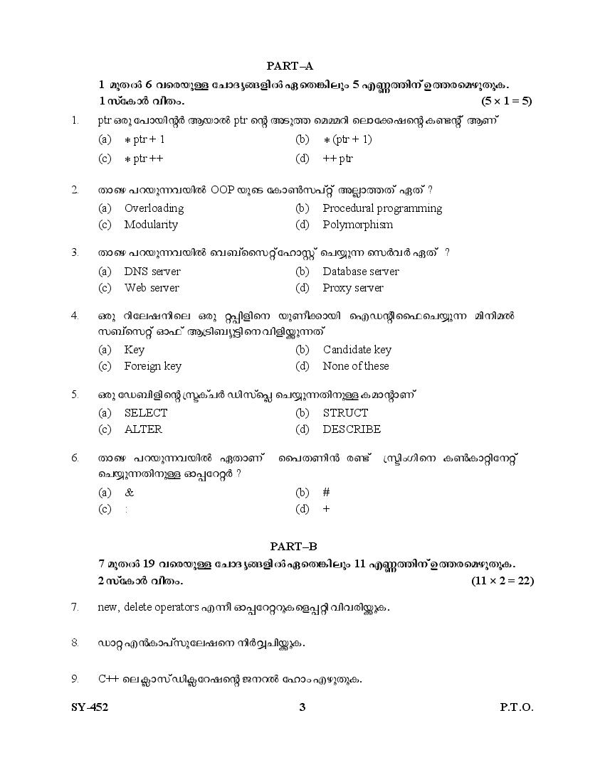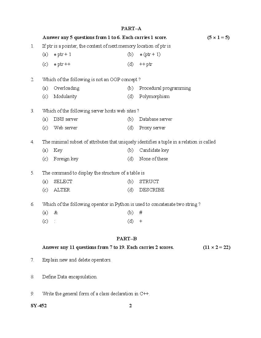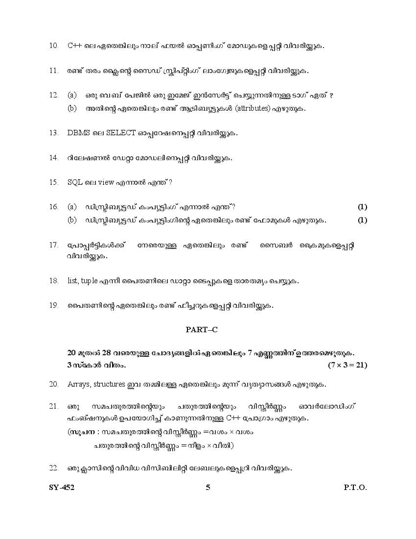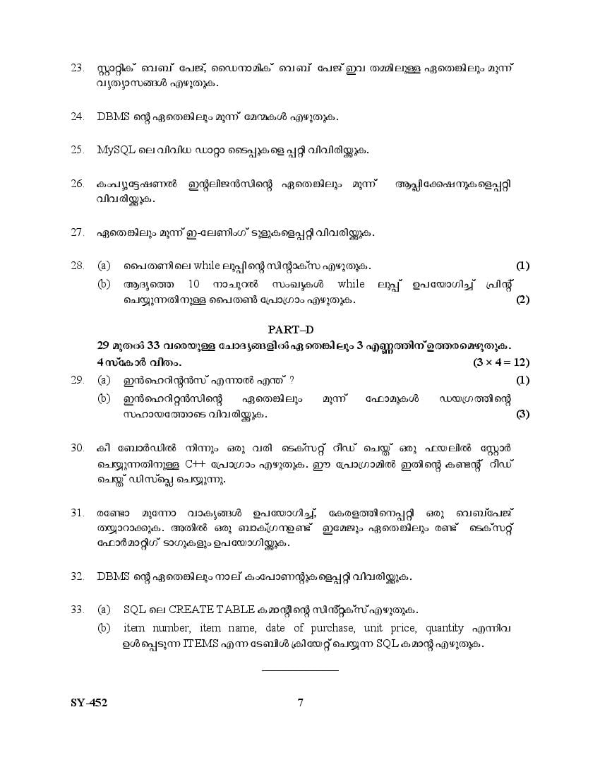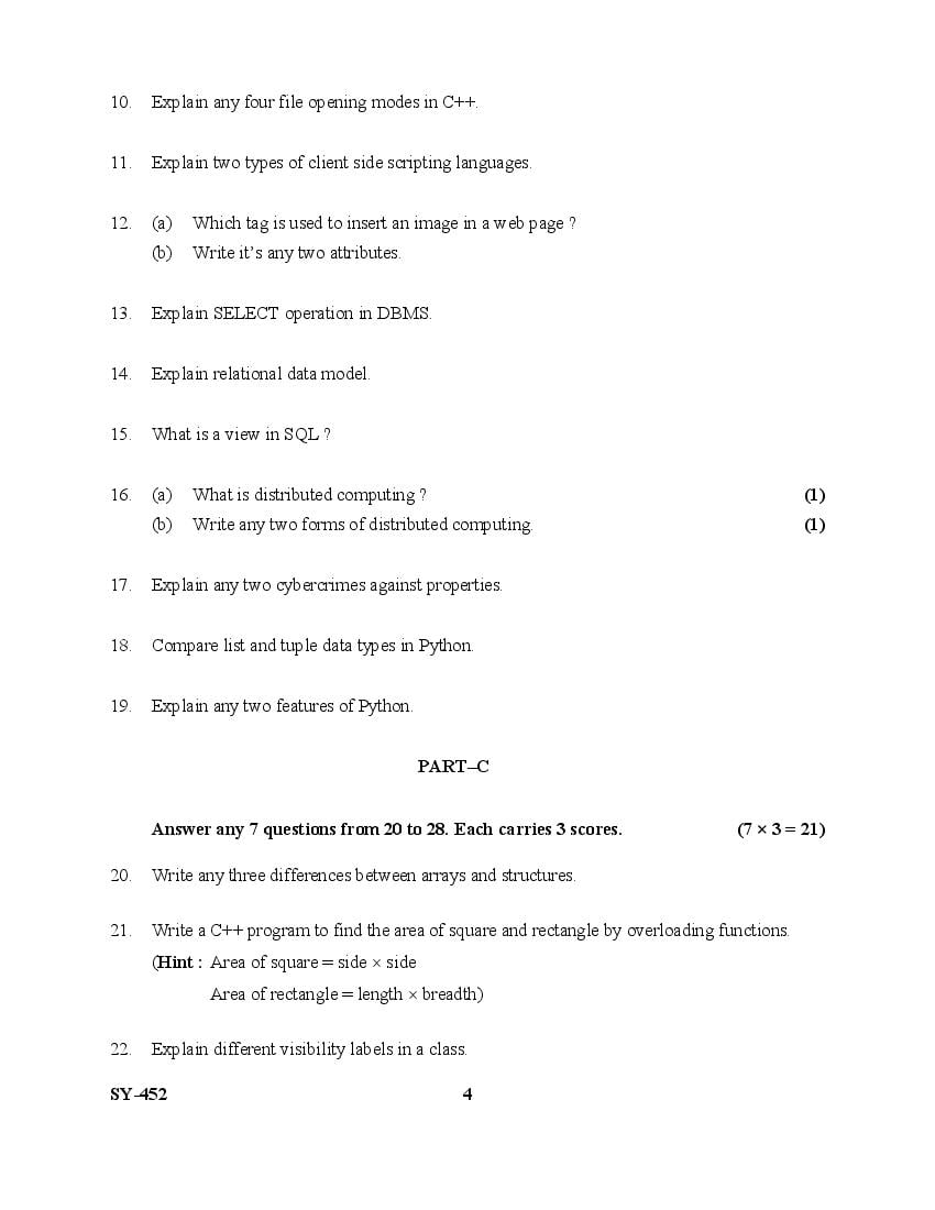 The Kerala Previous Year Question Paper for Class 12 (Plus Two) Computer Science and Information Technology is as follows.