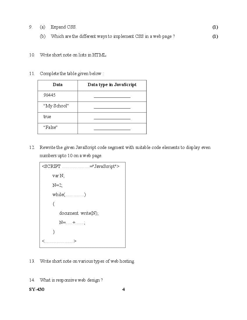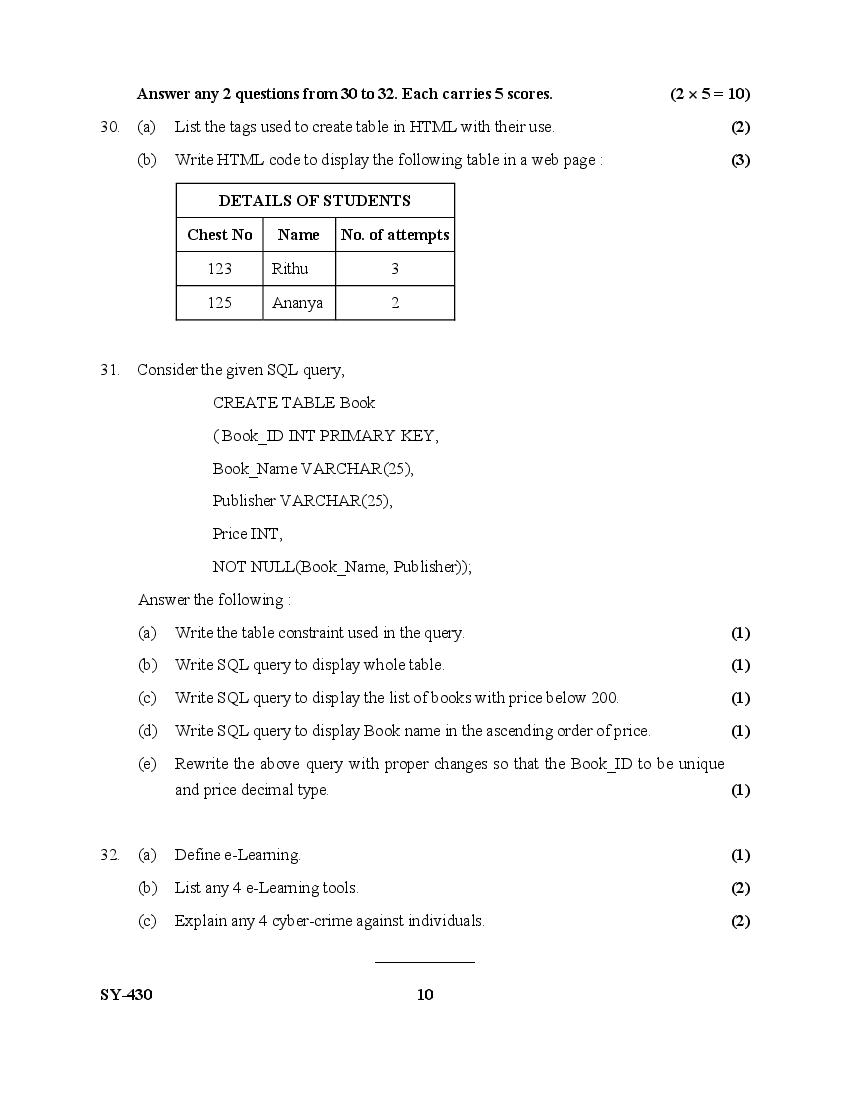 The Kerala Previous Year Question Paper for Class 12 (Plus Two) Computer Science is as follows.