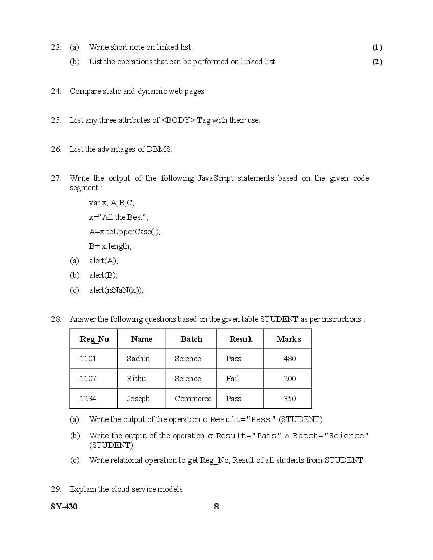 | Education Material Here | Kerala Board Exam Question Paper for Class 12 Computer Science 2025 |