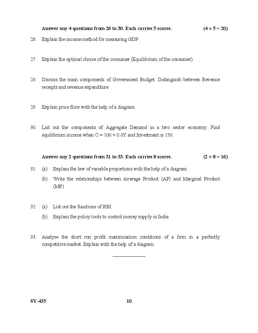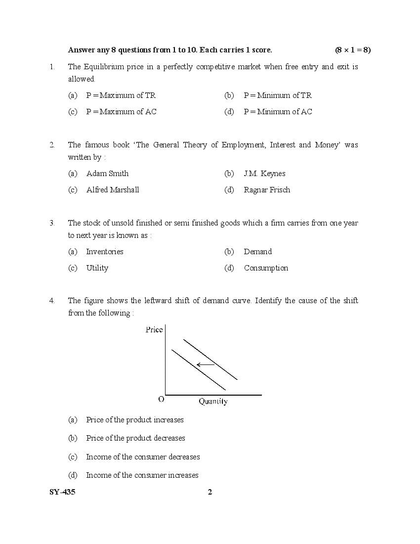 The Kerala Previous Year Question Paper for Class 12 (Plus Two) Economics is as follows.