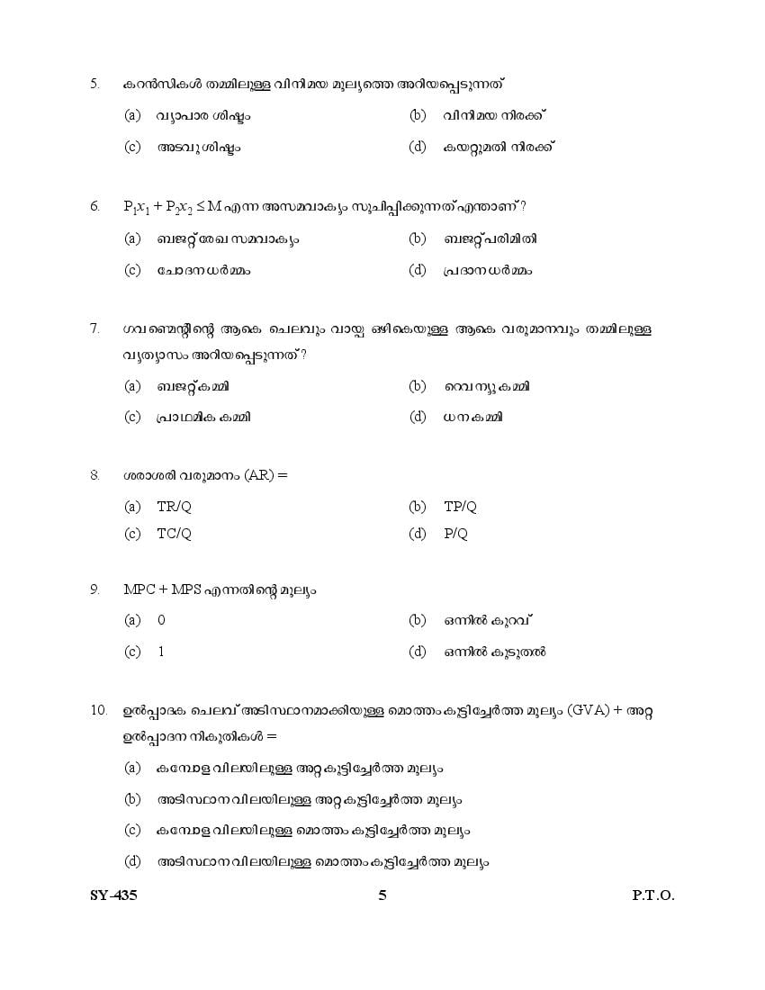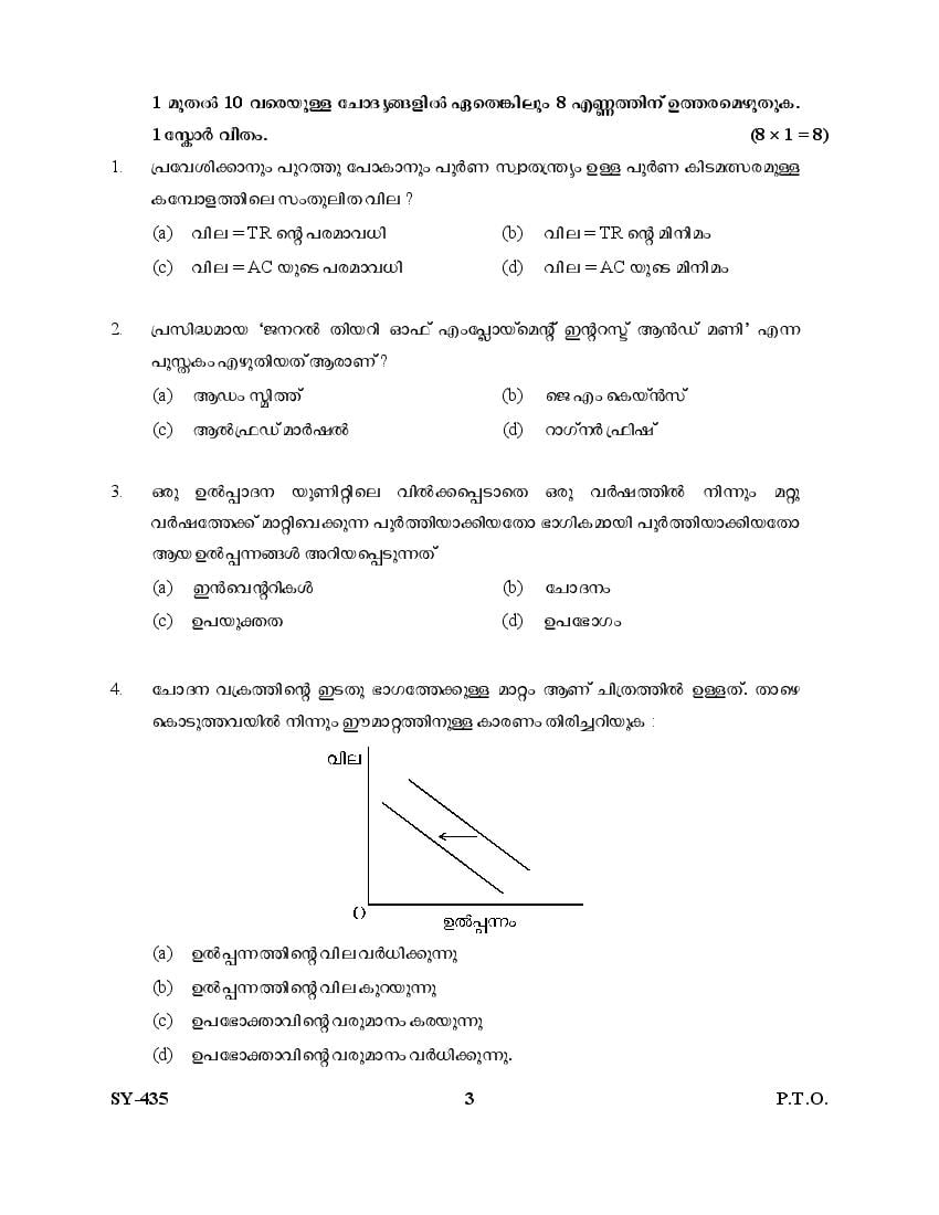 Kerala Plus Two Question Paper 2025 Economics View Download