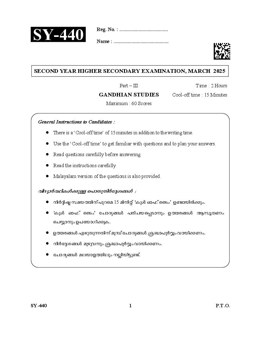 | Education Material Here | Kerala Board Exam Question Paper for Class 12 Gandhian Studies 2025 |