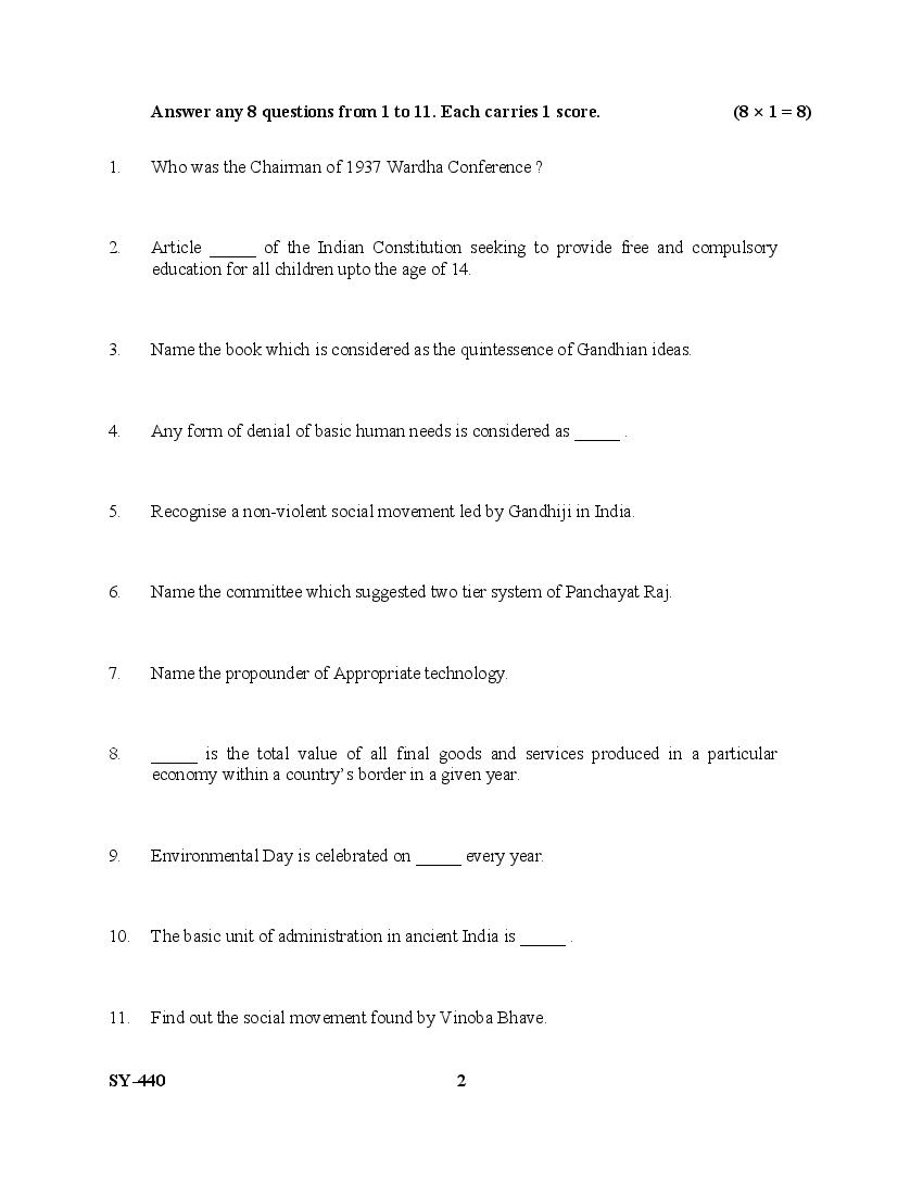 The Kerala Previous Year Question Paper for Class 12 (Plus Two) Gandhian Studies is as follows.