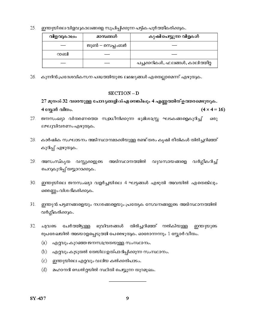 Kerala Plus Two Question Paper 2025 Geography View Download