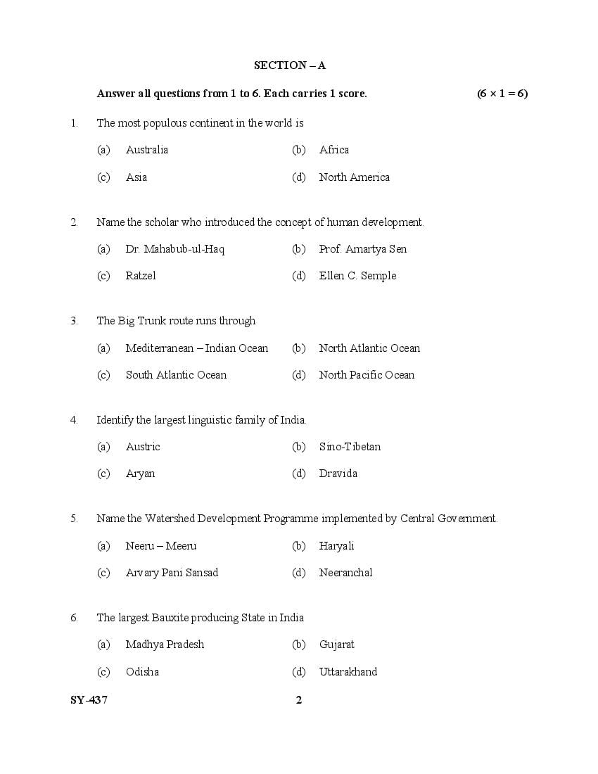 The Kerala Previous Year Question Paper for Class 12 (Plus Two) Geography is as follows.