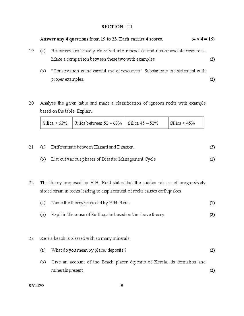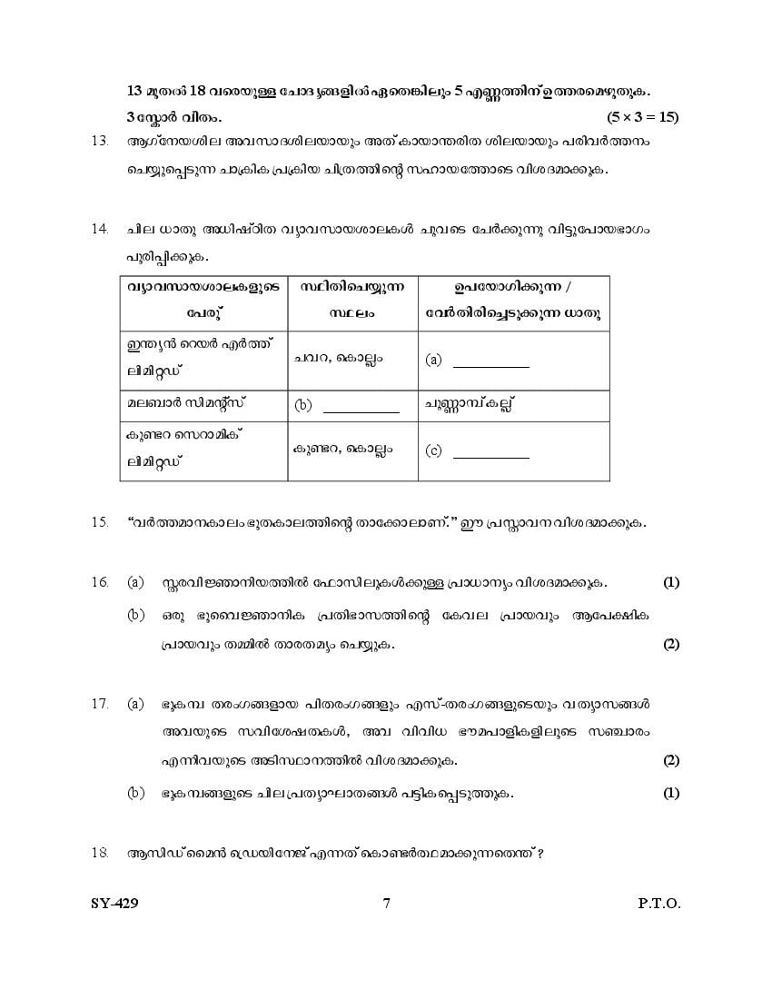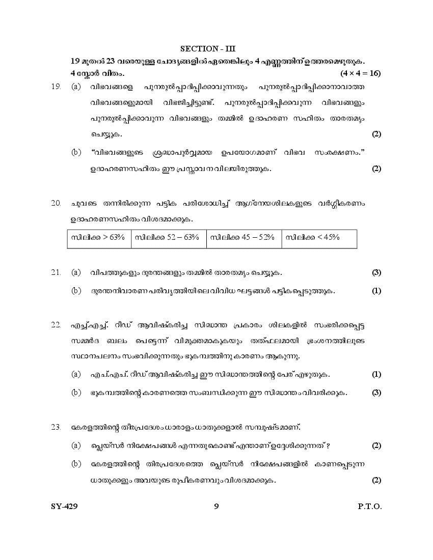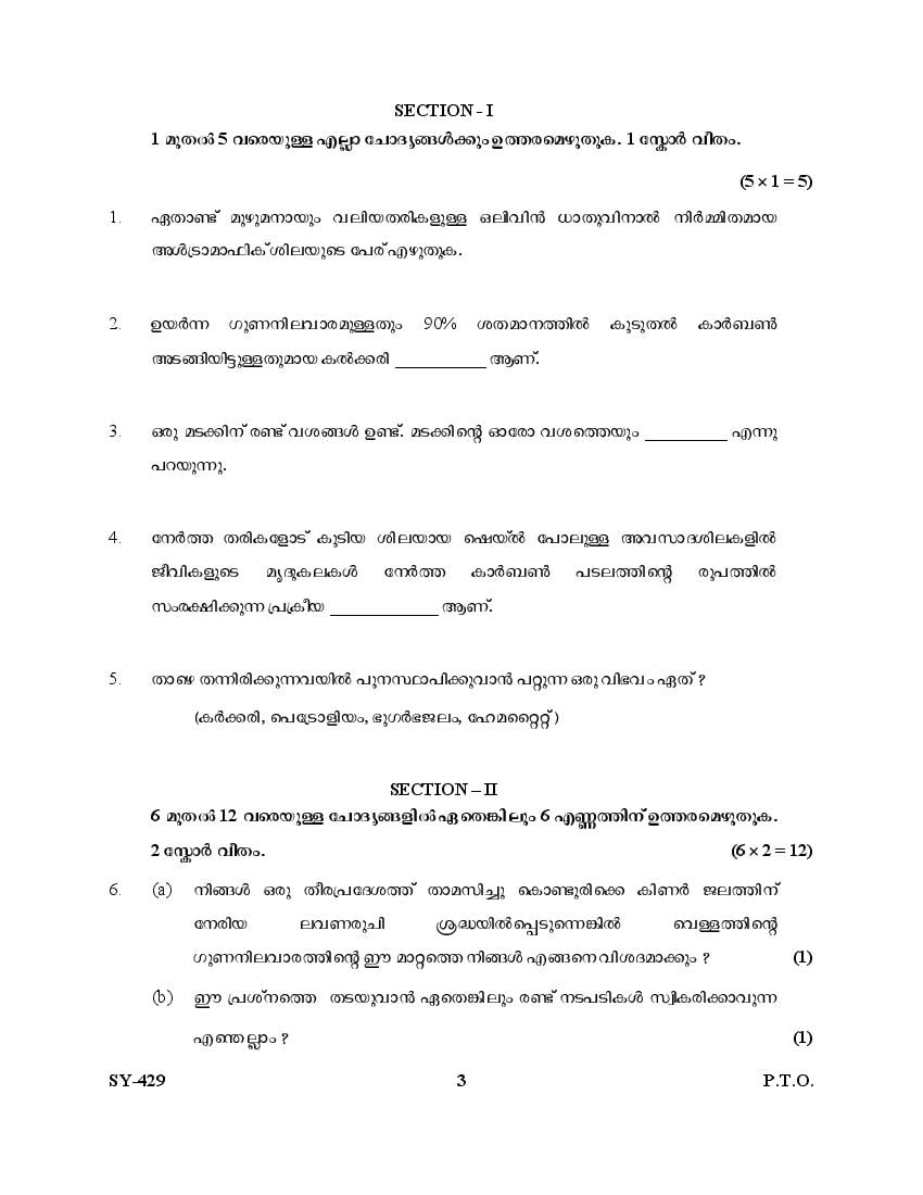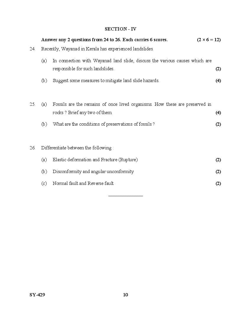 Kerala Plus Two Question Paper 2025 Geology View Download