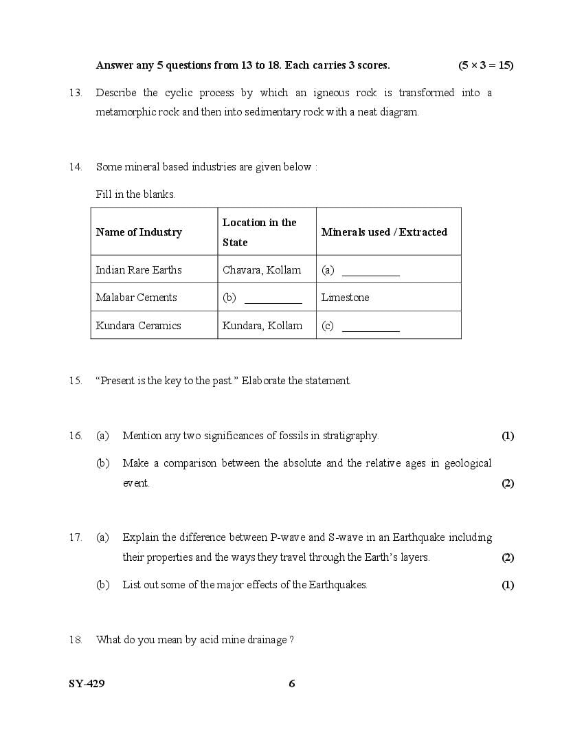 | Education Material Here | Kerala Board Exam Question Paper for Class 12 Geology 2025 |
