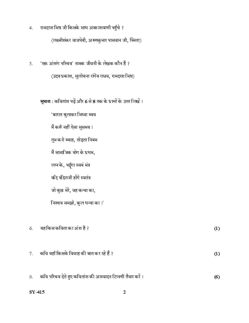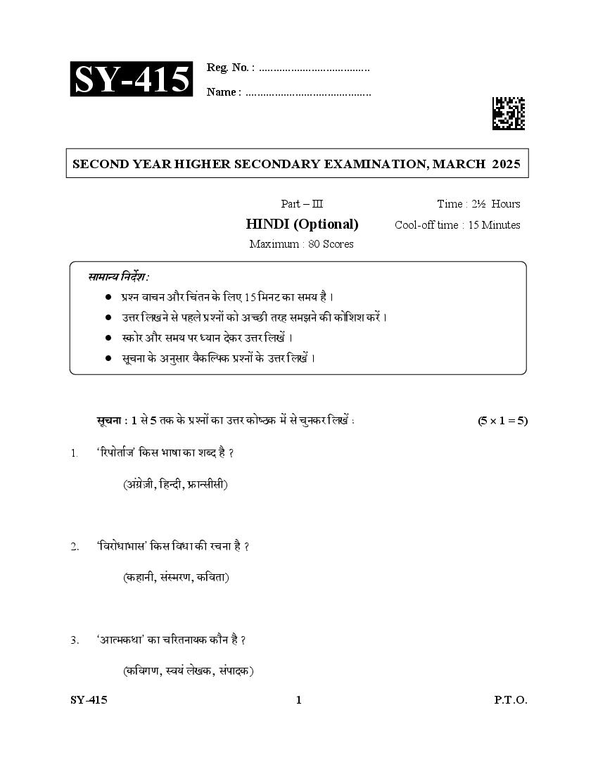 Kerala Plus Two Question Paper 2025 Hindi Optional View Download