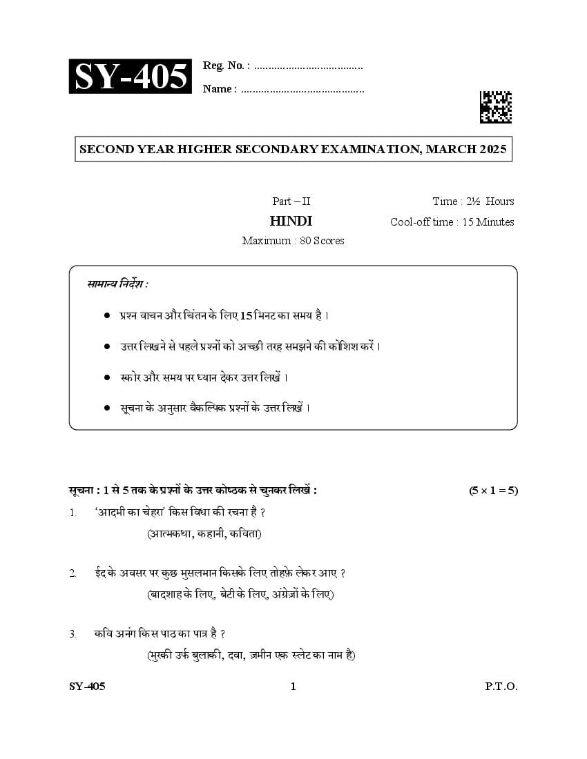 Kerala Plus Two Question Paper 2025 Hindi View Download