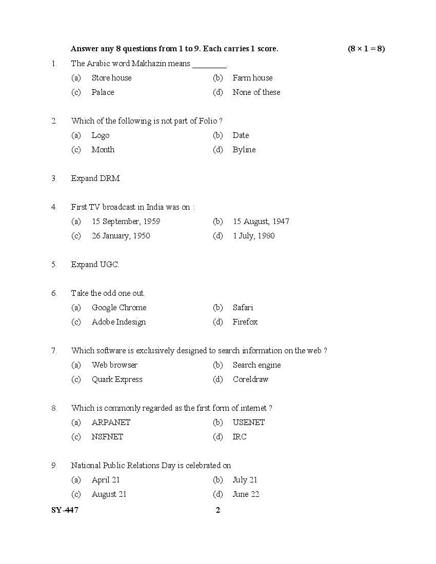 The Kerala Previous Year Question Paper for Class 12 (Plus Two) Journalism is as follows.