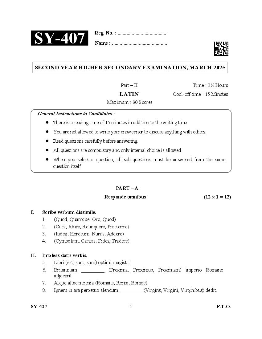 | Education Material Here | Kerala Board Exam Question Paper for Class 12 Latin 2025 |