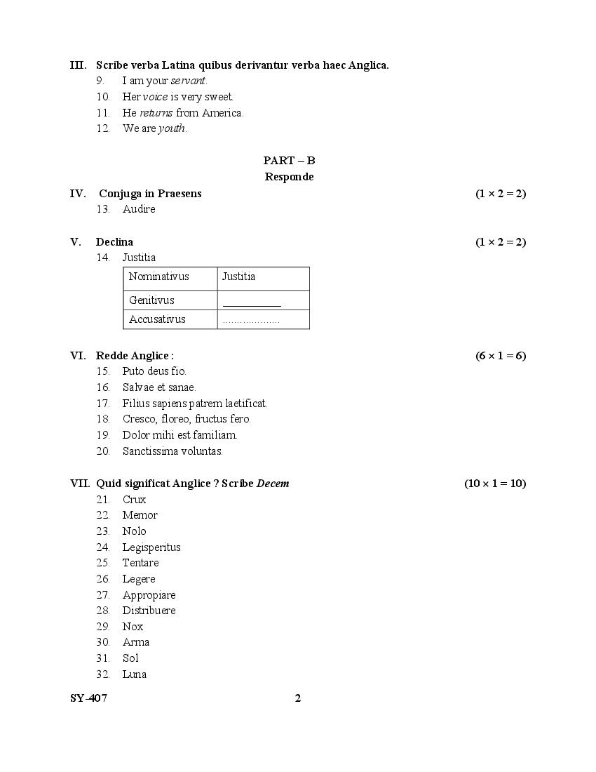 Kerala Plus Two Latin Question Paper 2025