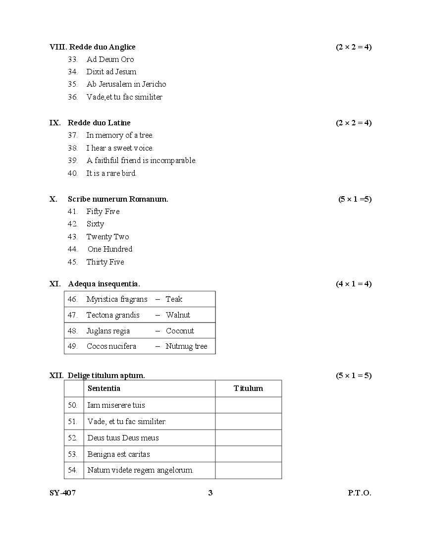 Kerala Plus Two Latin Question Paper 2025 PDF