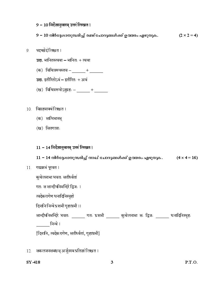 Kerala Plus Two Question Paper 2025 Sanskrit Sahitya View Download