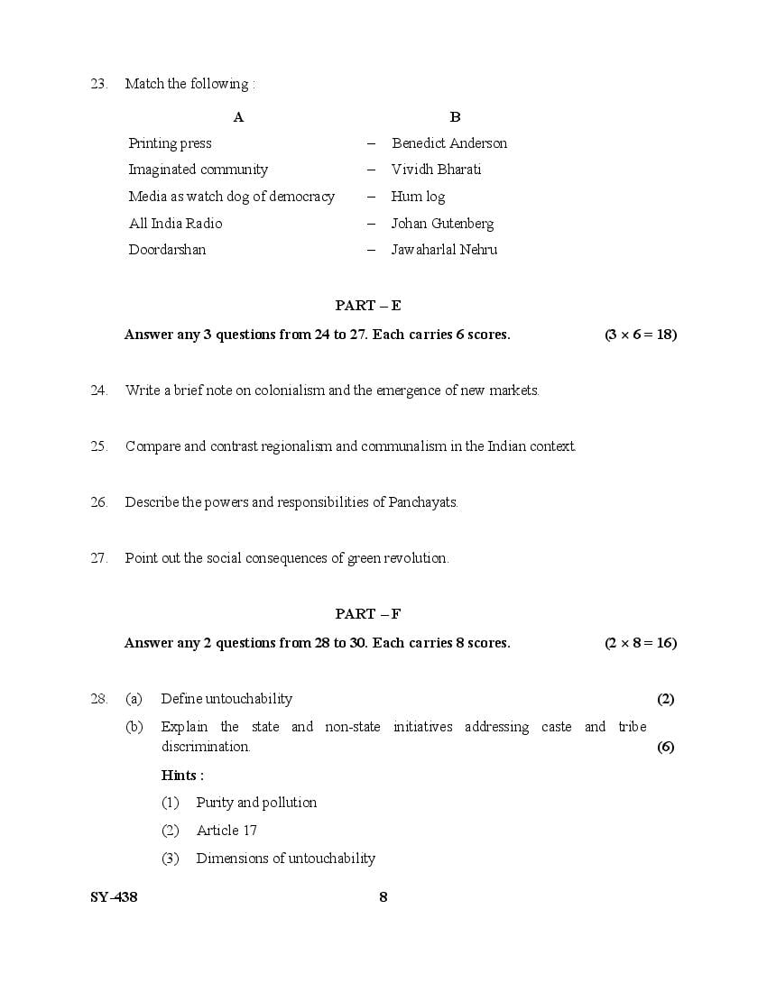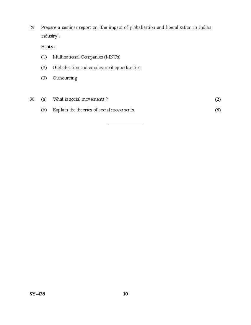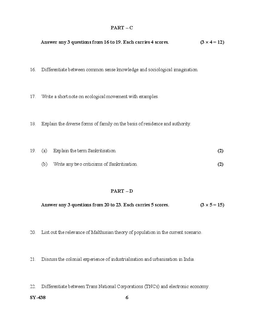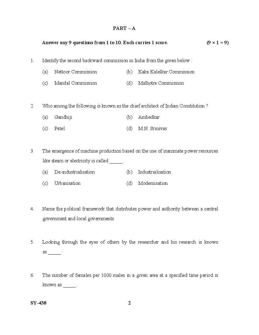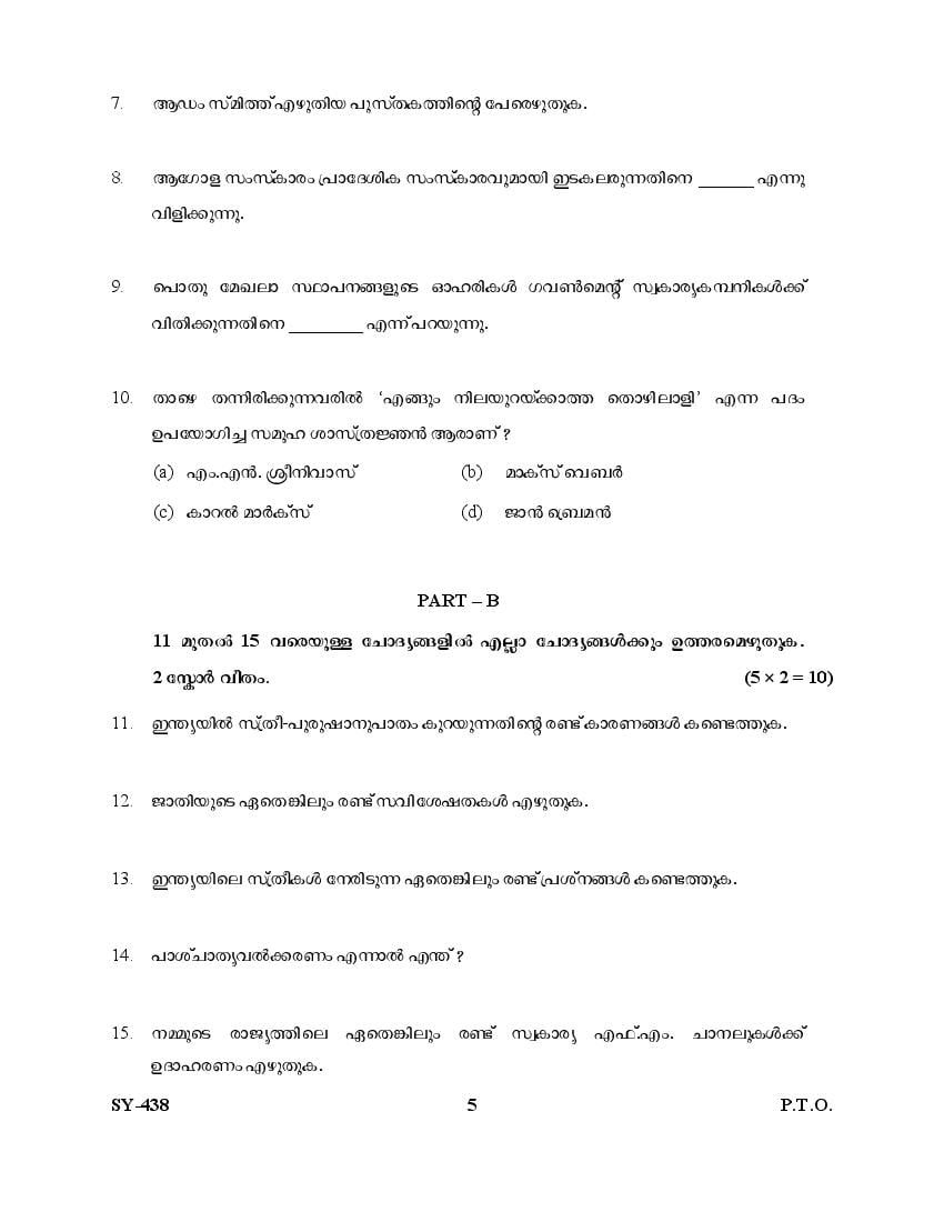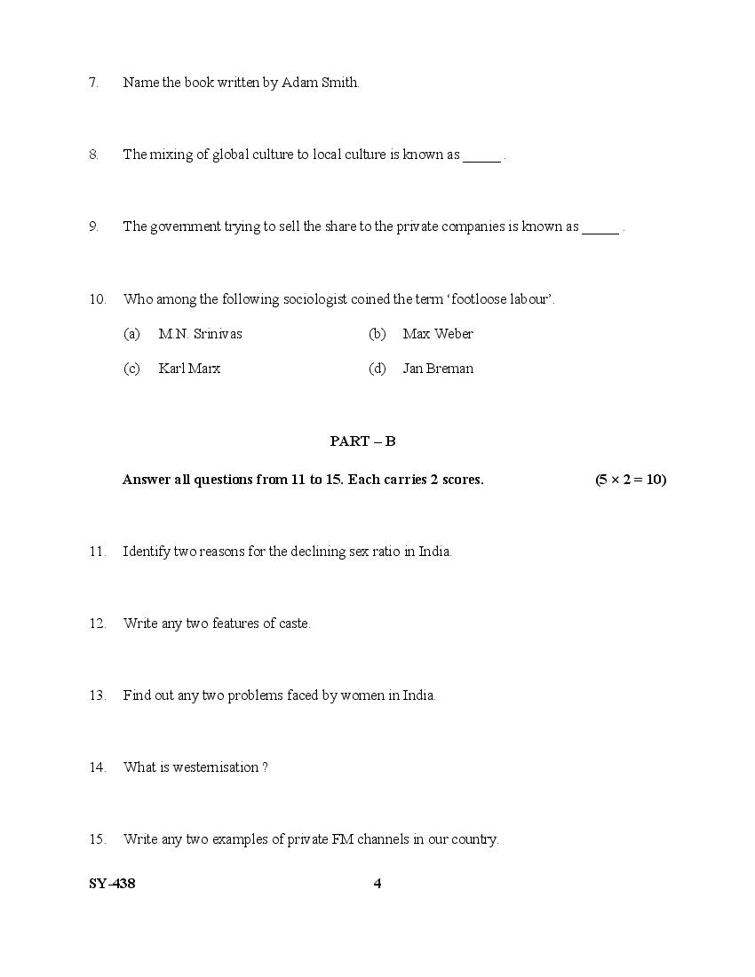 The Kerala Previous Year Question Paper for Class 12 (Plus Two) Sociology is as follows.