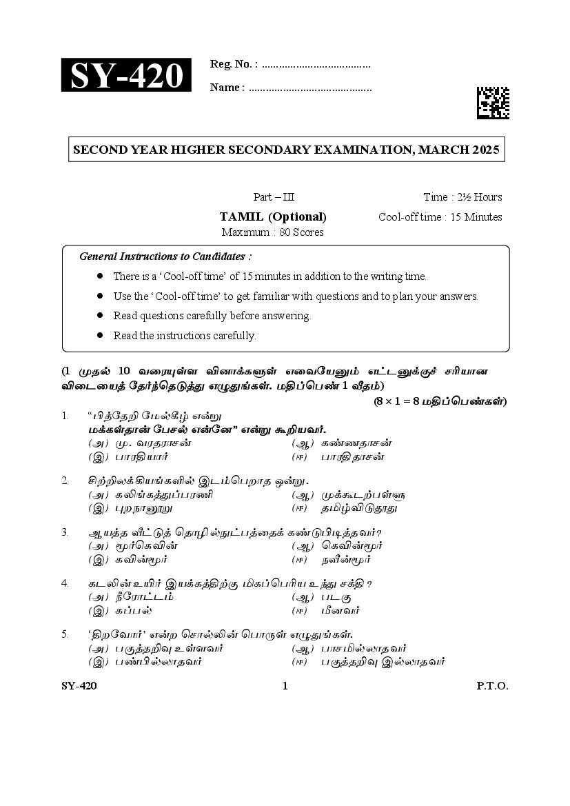 Kerala Plus Two Tamil Optional Question Paper 2025 PDF
