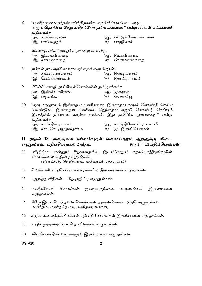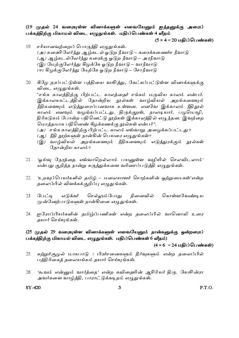 The Kerala Previous Year Question Paper for Class 12 (Plus Two) Tamil Optional is as follows.