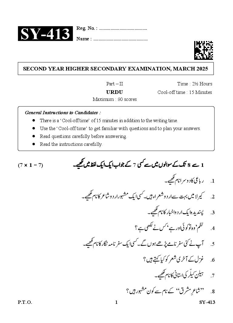 Kerala Plus Two Urdu Question Paper 2025 Download Link – Click Here to Download Question Paper PDF