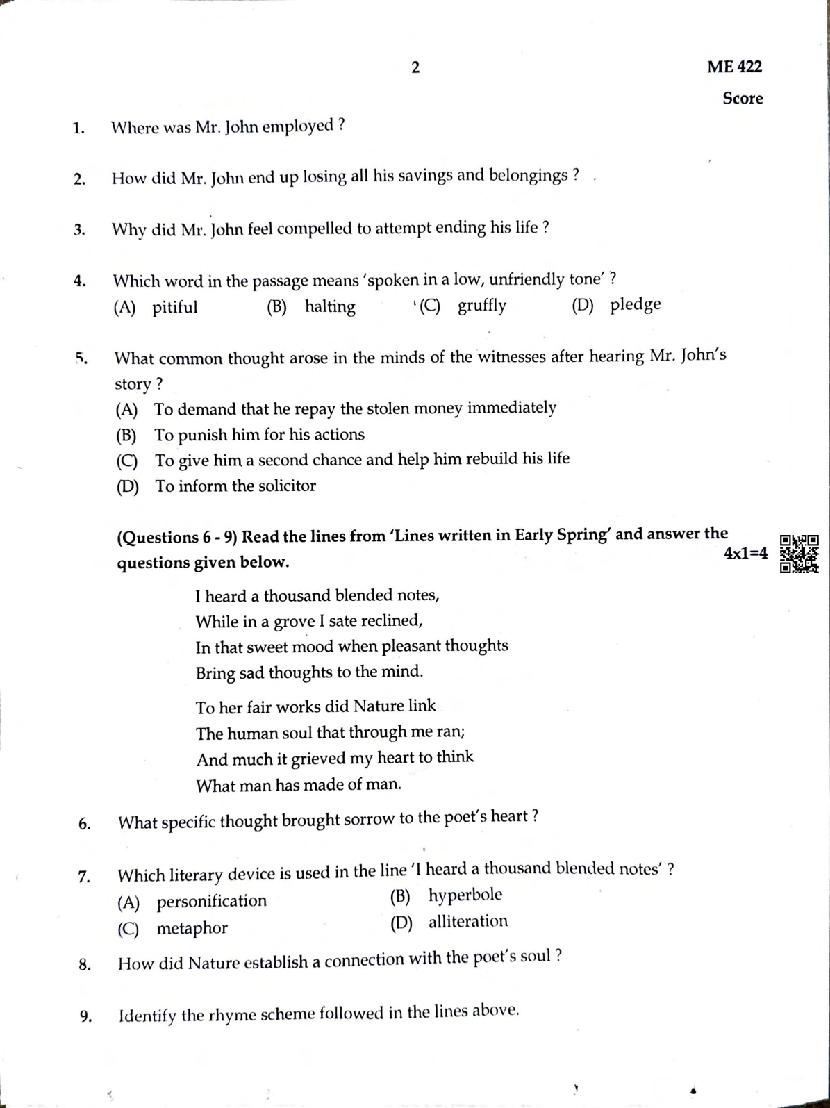 You can download the Kerala SSLC English Model Question Paper 2026 in PDF format to kickstart your practice. These question papers are curated by the Kerala Board of Public Examination (KBPE) and are a great way to evaluate your preparation level before the actual exams. The latest available complete paper is as follows.