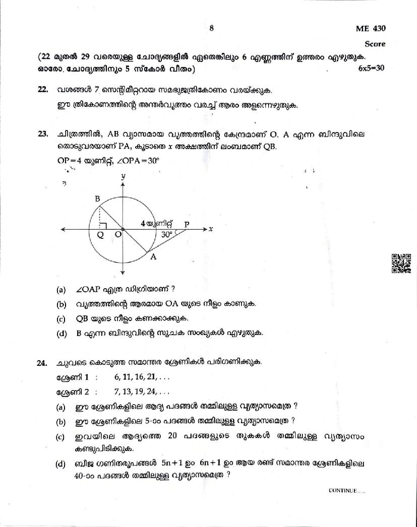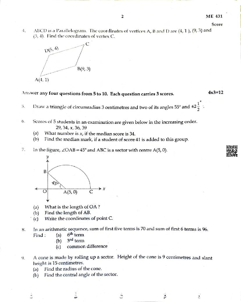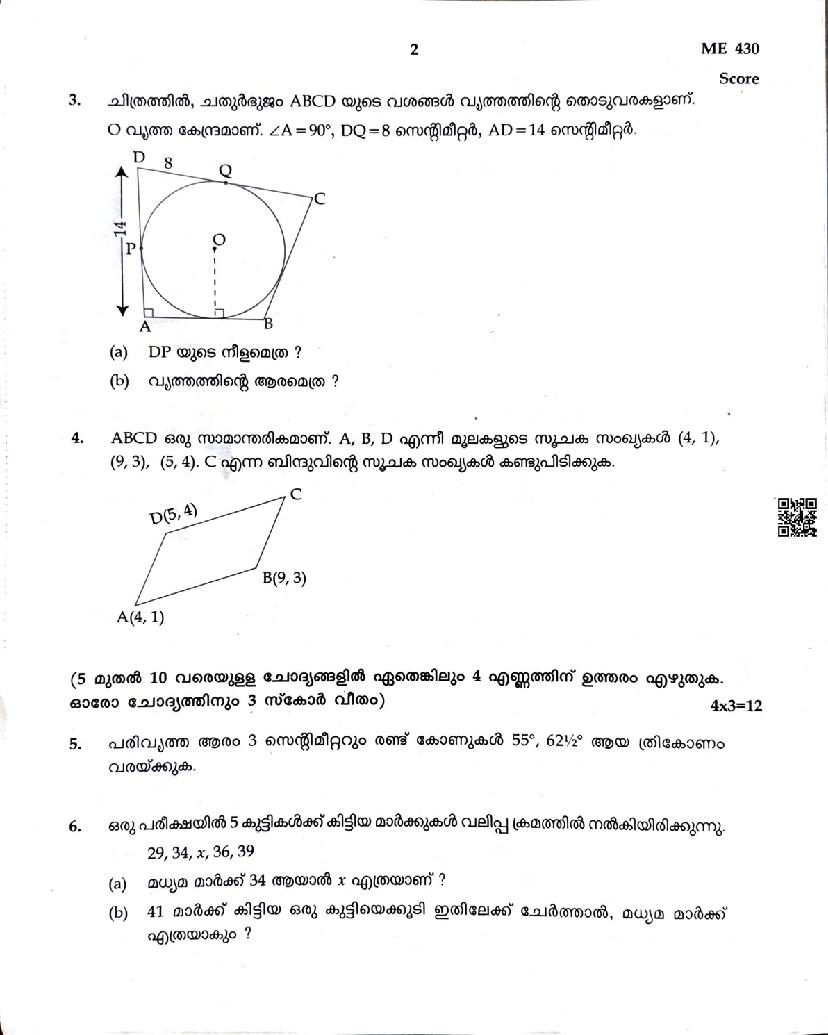 | Study Material Here | Kerala Model Exam Question Paper of SSLC Maths |
