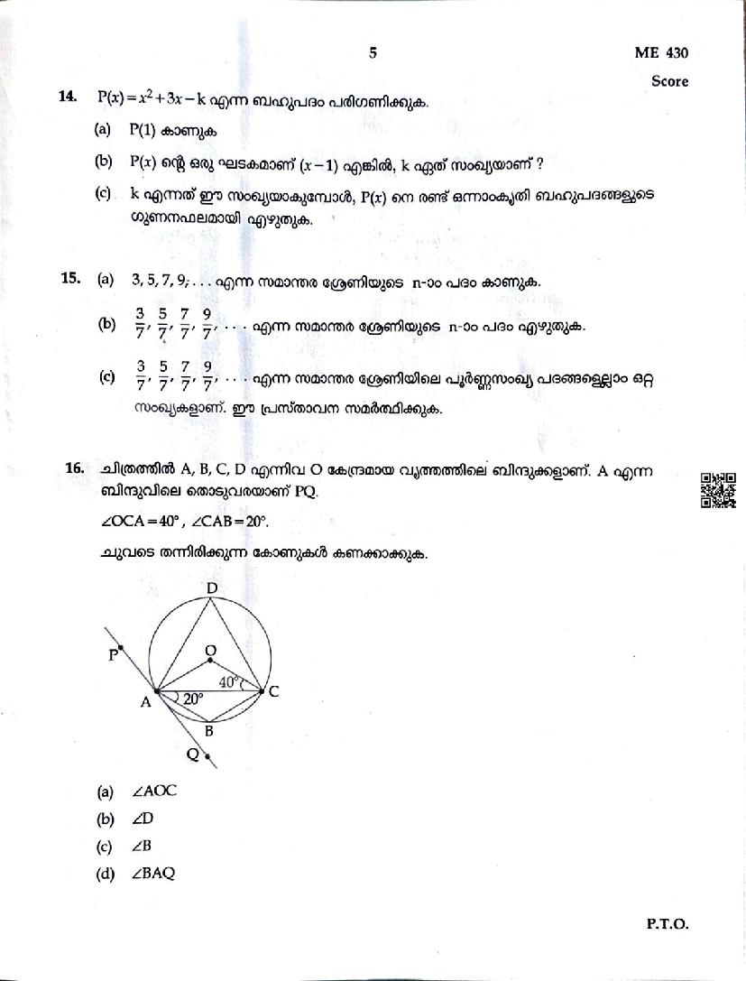 You can download the Kerala SSLC Maths Model Question Paper 2026 in PDF format to kickstart your practice. These question papers are curated by the Kerala Board of Public Examination (KBPE) and are a great way to evaluate your preparation level before the actual exams. The latest available complete paper is as follows.