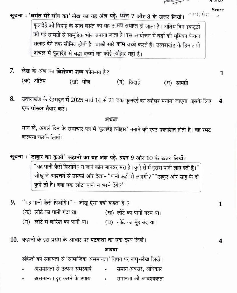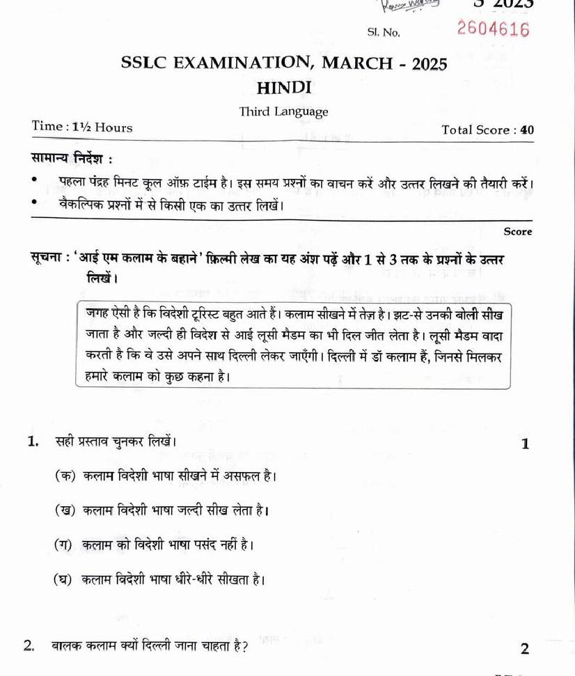 The Kerala Syllabus Question Papers for class 10th SSLC Hindi is as follows.