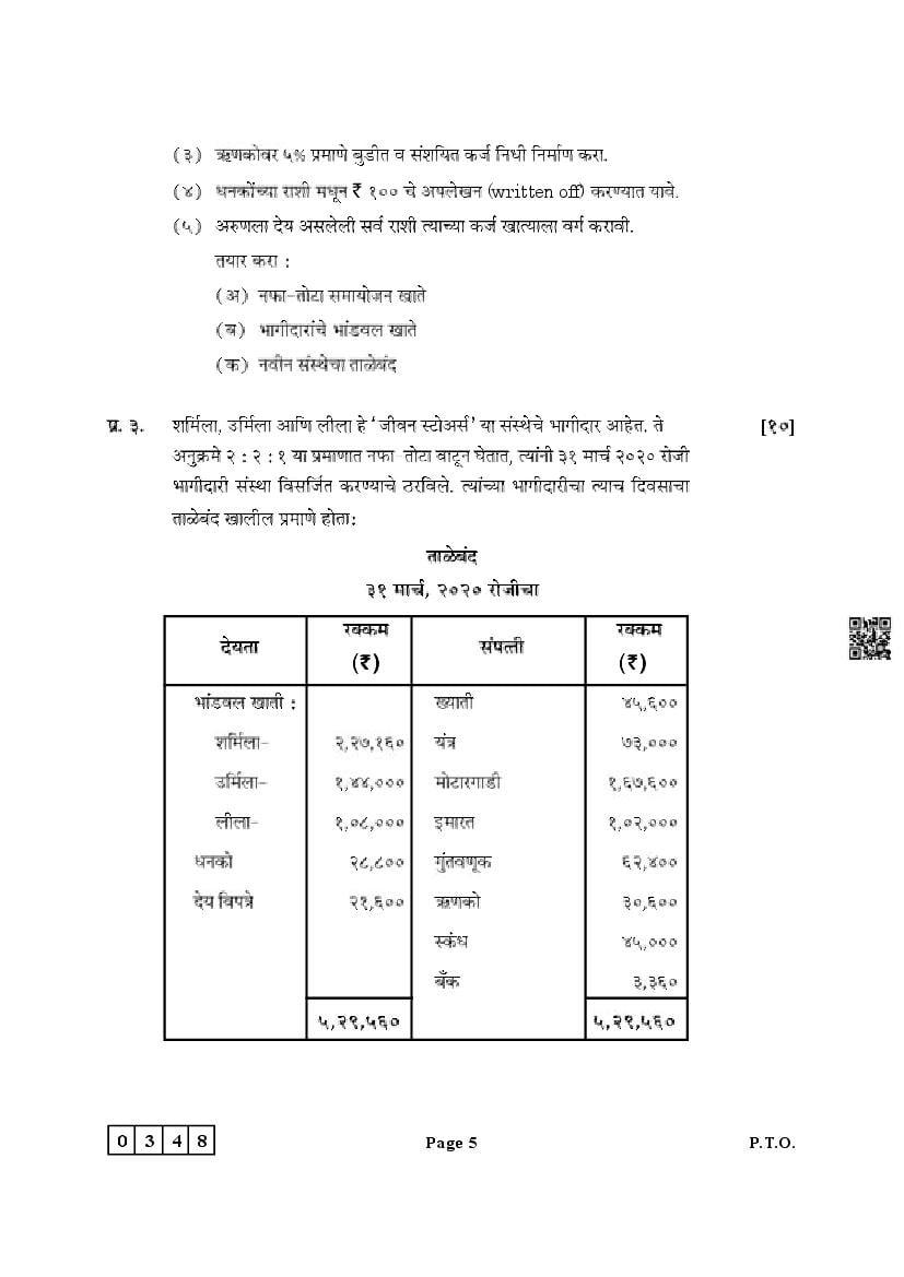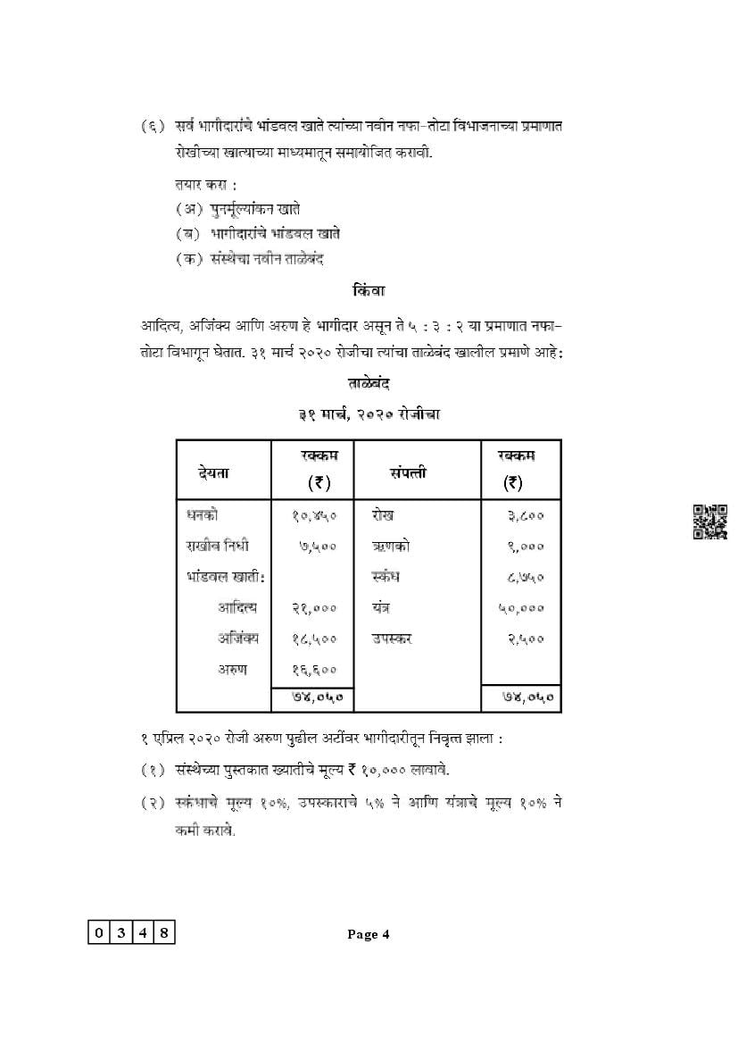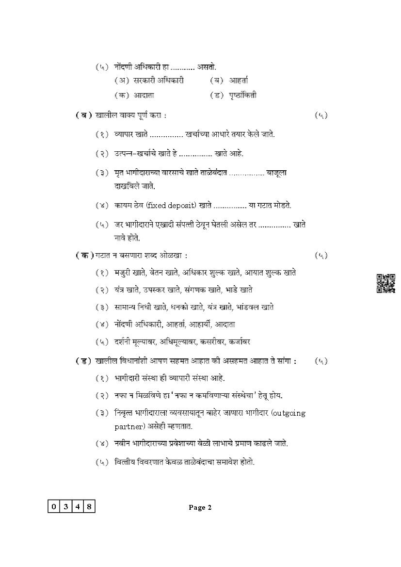 The Maharashtra Board Exam Question Paper of Class 12 HSC Book Keeping and Accountancy is as follows.